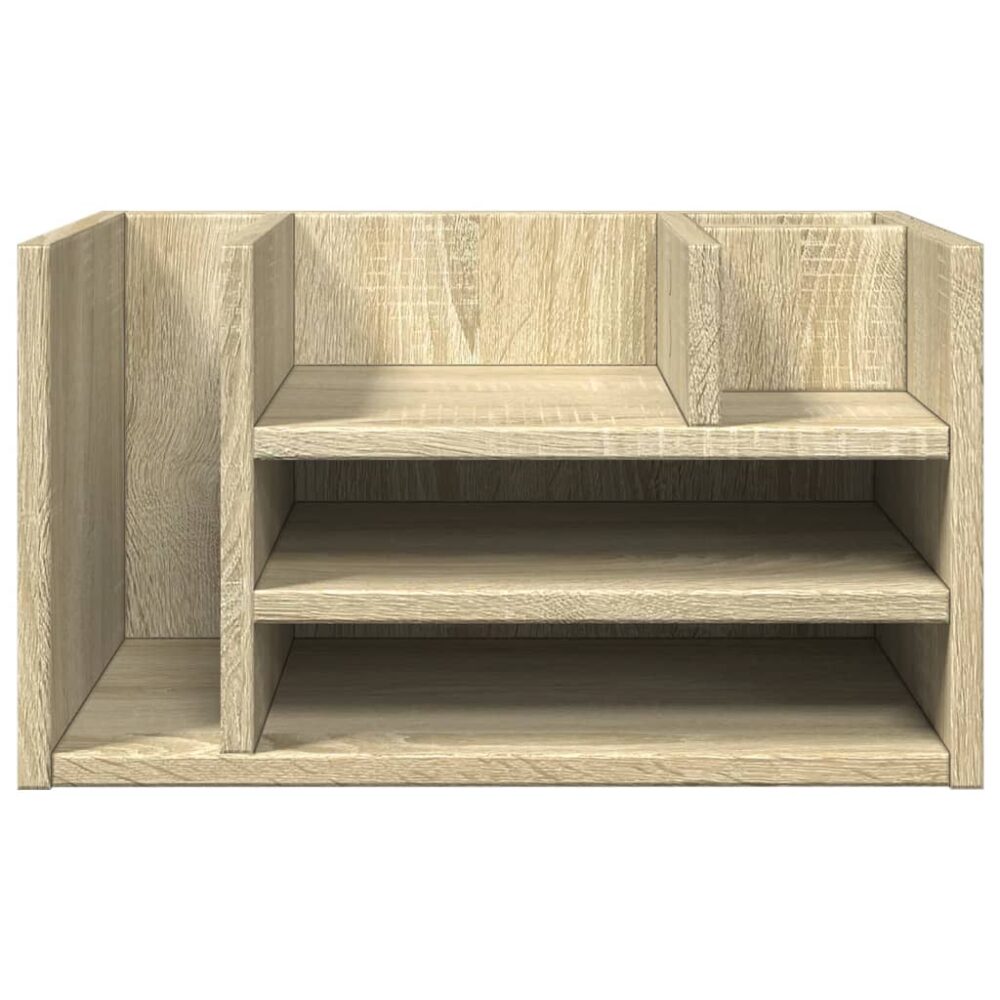 Mantenha os seus artigos essenciais organizados e facilmente acessíveis com este organizador de secretária compacto! Serve como um assistente útil da vida diária. Material estável e durável: os derivados de madeira são um material durável e estável com uma superfície lisa que é resistente à humidade, deformação e rachadelas, tornando-se uma escolha fiável para uma variedade de projetos.Amplo espaço de arrumação: esta unidade de arrumação para secretária possui 6 compartimentos que oferecem um amplo espaço para documentos A4, pastas, canetas, calculadoras, agrafadores, notas adesivas e outros pequenos acessórios.Economia de espaço: este organizador de ambiente de trabalho utiliza eficientemente o espaço vertical para maximizar a capacidade de arrumação ao mesmo tempo que minimiza a área de trabalho necessária.Ampla aplicação: este organizador de ambiente de trabalho versátil é o complemento perfeito para a sua casa, escritório, sala de estudo, quarto, sala de estar e cozinha.