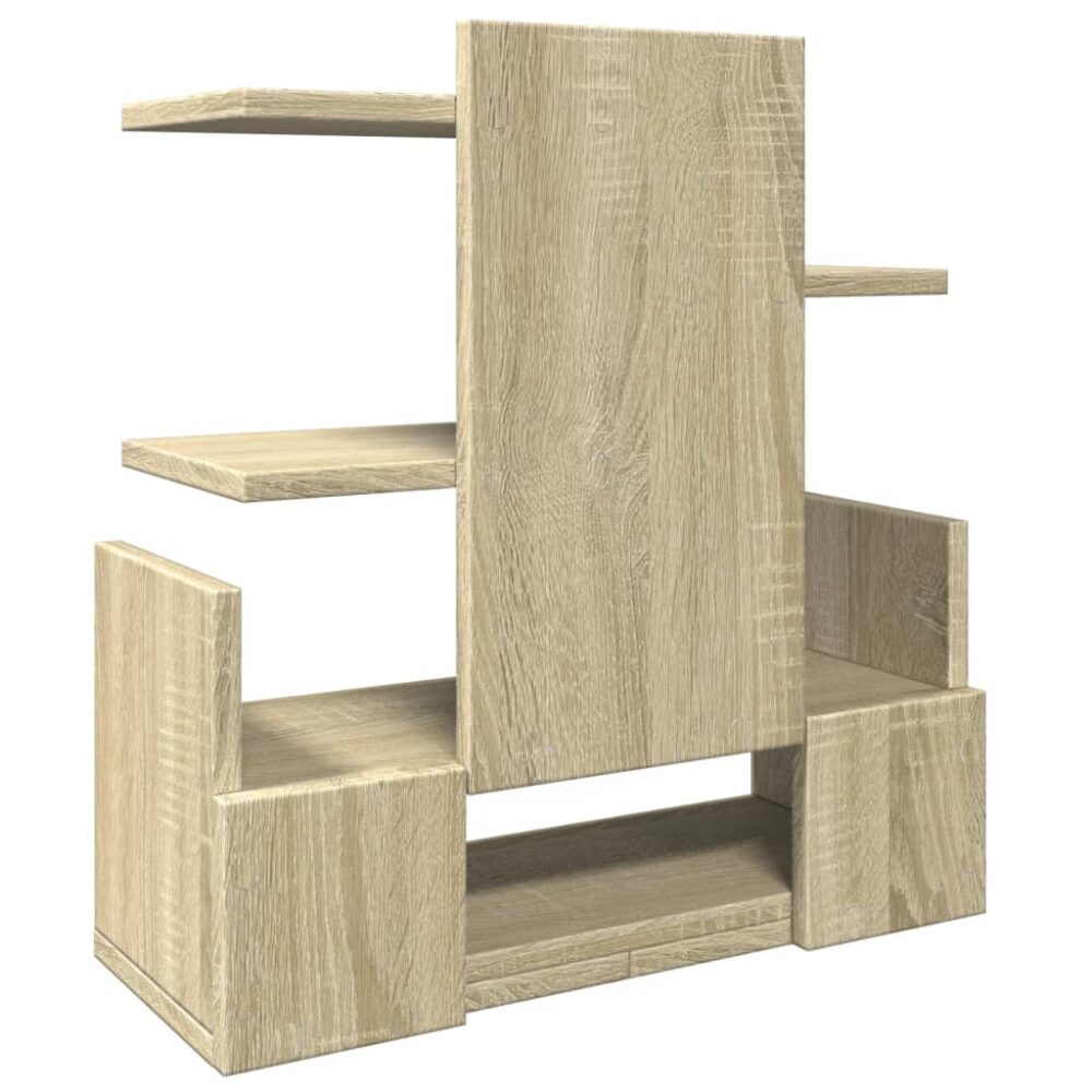 Mantenha os seus artigos essenciais organizados e facilmente acessíveis com este organizador de secretária compacto! Serve como um assistente útil da vida diária. Material estável e durável: os derivados de madeira são um material durável e estável com uma superfície lisa que é resistente à humidade, deformação e rachadelas, tornando-se uma escolha fiável para uma variedade de projetos.Amplo espaço de arrumação: com superfícies planas e abertas de alturas diferentes, esta arrumação de secretária proporciona um amplo espaço para arrumar os seus livros e revistas, organizar artigos de escritório, expor molduras ou vasos pequenos com plantas.Ampla aplicação: este organizador de ambiente de trabalho versátil é o complemento perfeito para a sua casa, escritório, sala de estudo, quarto, sala de estar e cozinha.Design intemporal: este organizador de secretária apresenta linhas simples e lisas e um aspeto minimalista que atribui um estilo moderno intemporal à sua decoração.