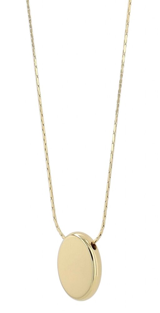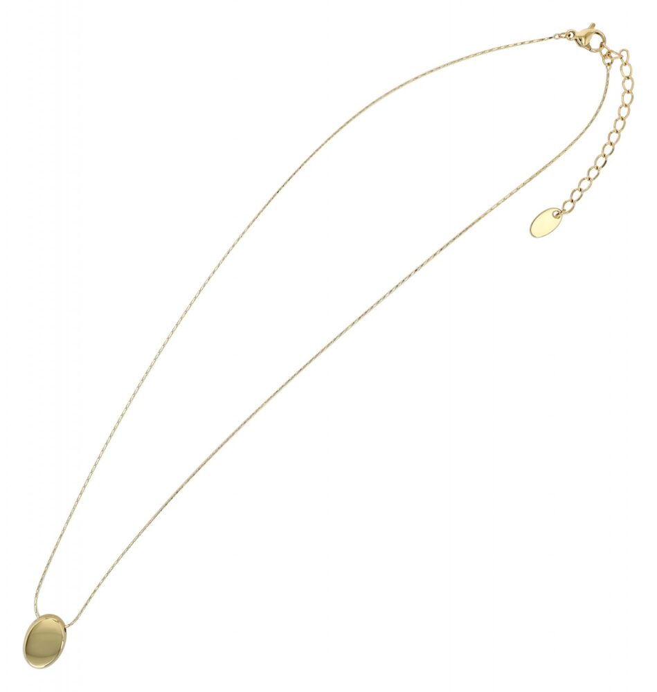 Este colar, feito de aço inoxidável e disponível em prata e ouro, impressiona pelo seu design simples, mas expressivo. O pingente oval, medindo A 1,4 cm x L 1,0 cm, oferece espaço suficiente para uma gravação individual e, assim, se torna um acessório muito pessoal. A corrente tem 41,5 cm de comprimento e pode ser facilmente ajustada usando a extensão de 5 cm. Uma joia perfeita que cria toques de estilo tanto para ocasiões festivas quanto para uso diário.