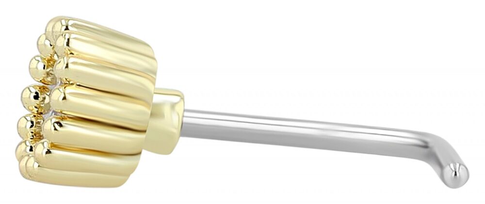 O piercing de nariz na popular forma de L para um ajuste confortável e seguro.