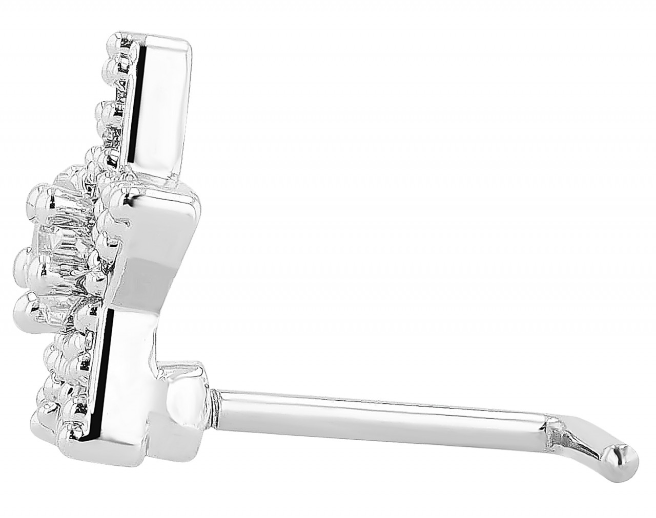 Feito de aço inoxidável de alta qualidade, ideal para piercings, “Pakize” é um piercing de nariz para aparafusar. O “Pakize” tem um comprimento de barra de 7,5 mm e um Ø de 0,9 mm. O pino, uma estrela decorada com 21 zircónias, tem um Ø de 0,9 mm e uma altura de 4 mm, o que o torna um acessório vistoso e elegante. Disponível em prateado ou dourado.
