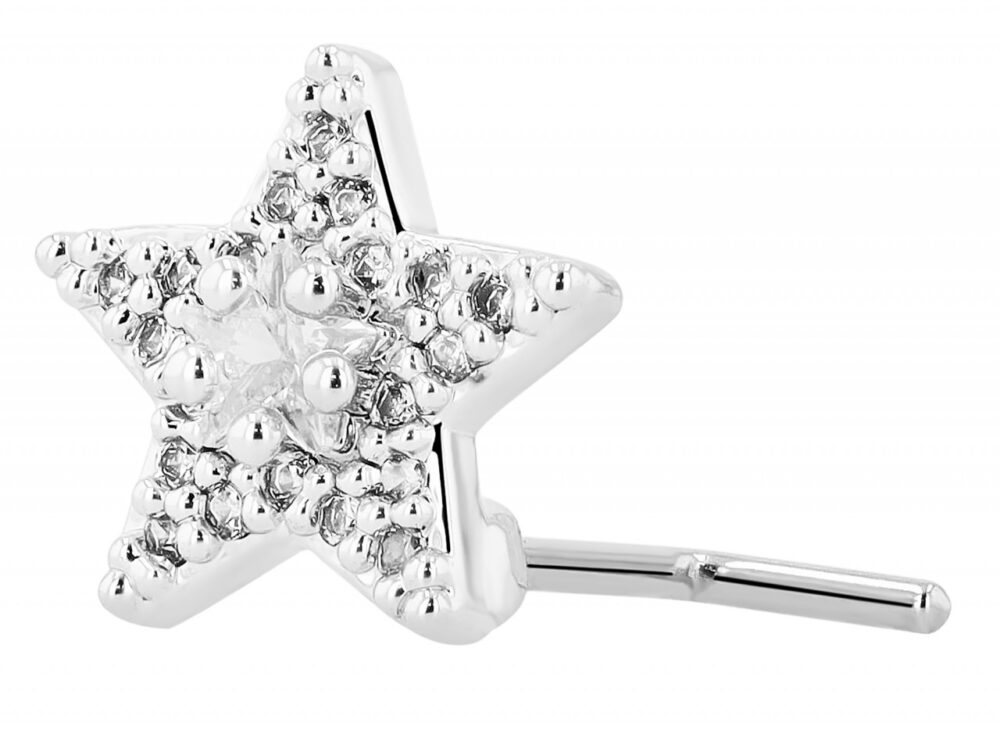 Feito de aço inoxidável de alta qualidade, ideal para piercings, “Pakize” é um piercing de nariz para aparafusar. O “Pakize” tem um comprimento de barra de 7,5 mm e um Ø de 0,9 mm. O pino, uma estrela decorada com 21 zircónias, tem um Ø de 0,9 mm e uma altura de 4 mm, o que o torna um acessório vistoso e elegante. Disponível em prateado ou dourado.