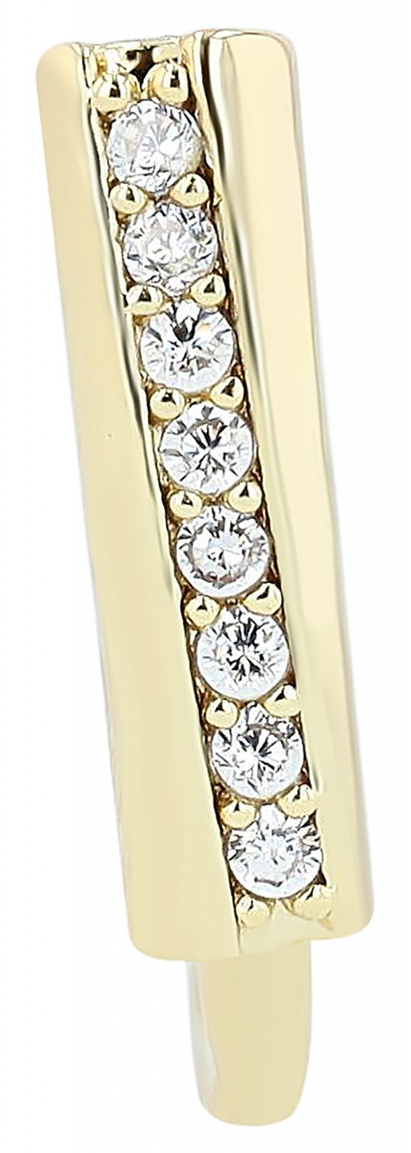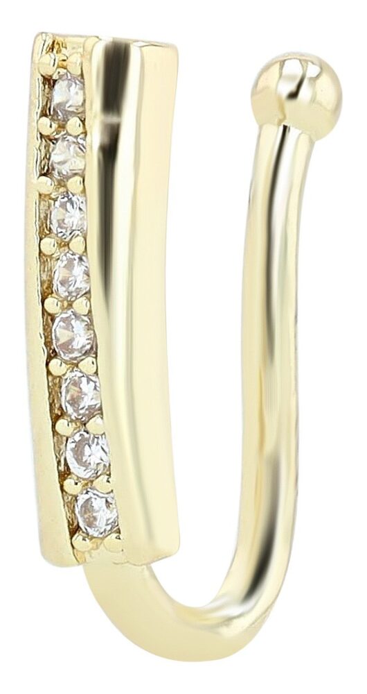 A cabeça é uma linha (10 x 3 x 1,5 mm) decorada com 8 pedras de zircónio. Este piercing falso impressiona pelo seu design simples com um toque de elegância.