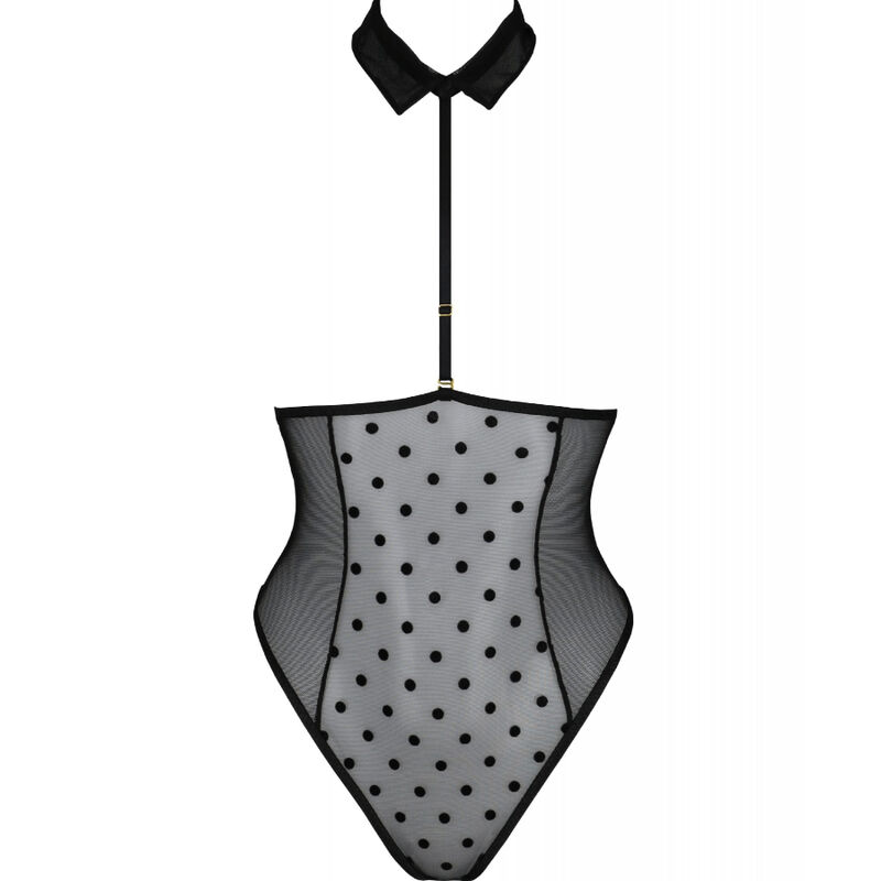 Este body sexy Trisha é uma proposta da marca Passion, dirigida a mulheres conscientes do seu corpo e da sua feminilidade. Perfeito para qualquer momento e ocasião em que você quiser se divertir. O modelo apresentado expõe completamente os seios. O acabamento traseiro do espartilho aumenta o conforto. Uma gargantilha sexy e destacável em formato de pescoço adiciona personalidade geral.