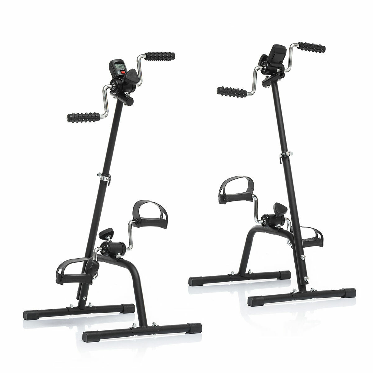 Este mini pedalador dual permite-lhe exercitar os braços e as pernas enquanto está sentado confortavelmente. Dispõe de um contador digital, altura regulável, pés antiderrapantes, correias de fixação nos pedais e regulador da intensidade do exercício. Ideal para pessoas idosas.