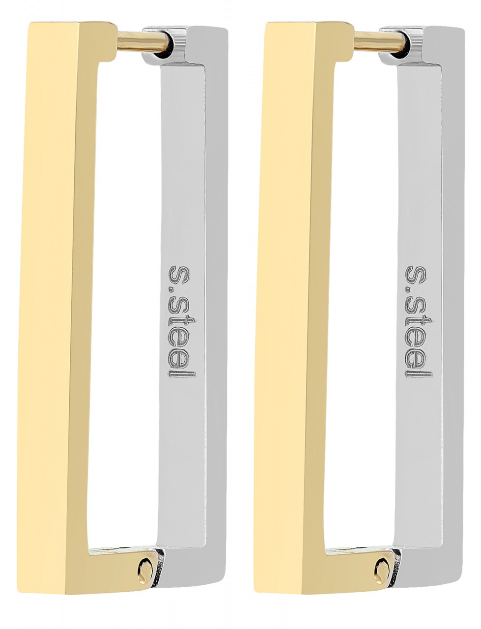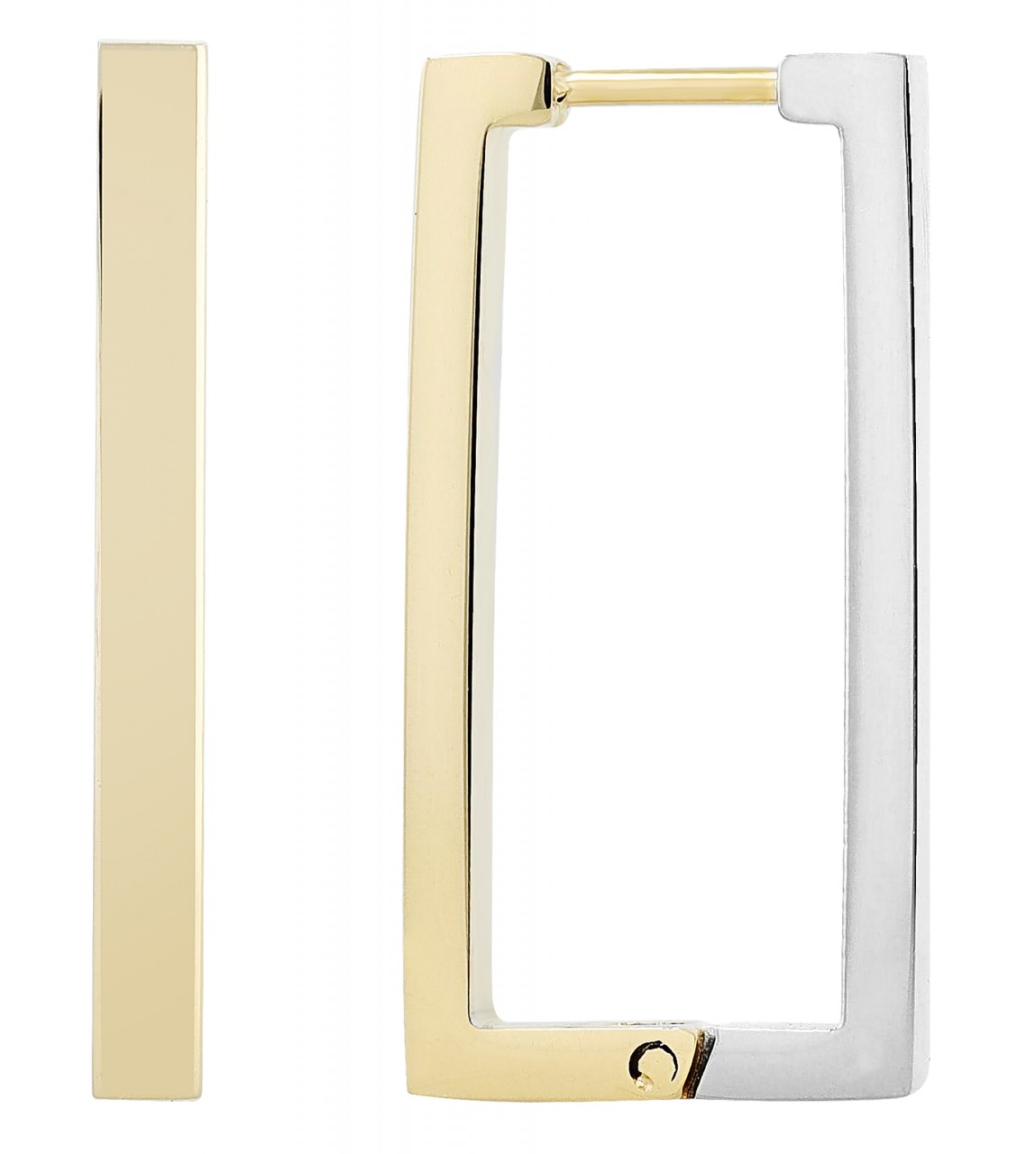 Os brincos de argola retangulares são feitos de aço inoxidável e têm um visual simples e brilhante. O fecho é feito de aço inoxidável e é prático, permitindo fácil colocação e retirada, além de garantir uma fixação segura no orifício da orelha. Os brincos de argola têm 27 mm de altura, 3 mm de largura e 2 mm de espessura.