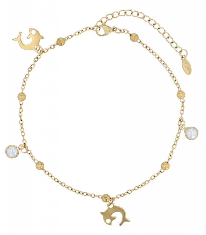Akzent® Pack de 4 Pulseiras de Pé “Peggy” Douradas com Pingentes em Aço Inoxidável 0093
