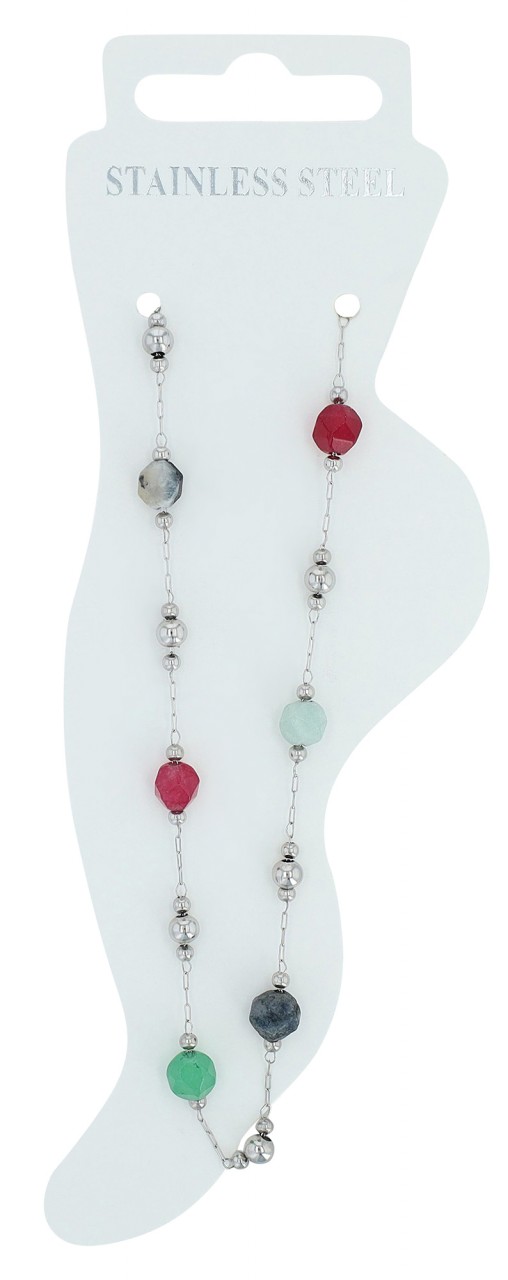Akzent® Pack de 4 Pulseiras de Pé “Peggy” Prateadas com Pedras Naturais em Aço Inoxidável 0093