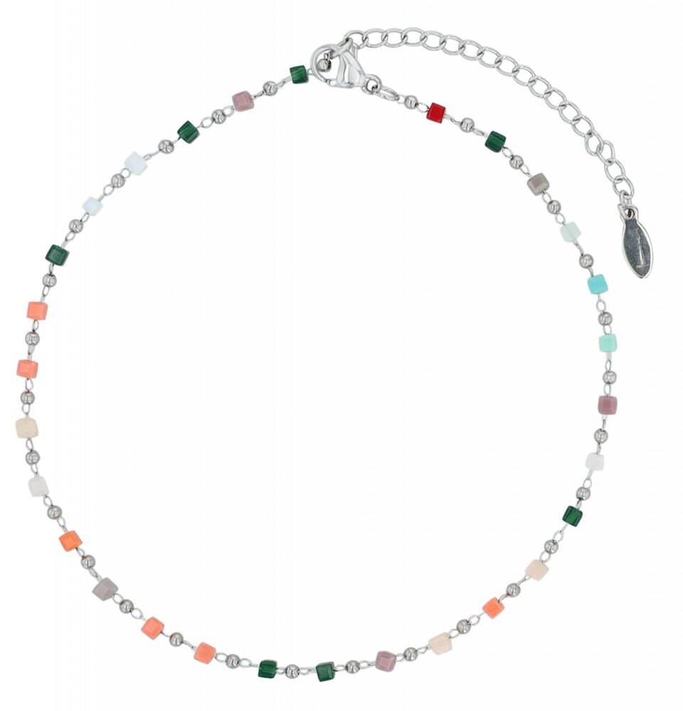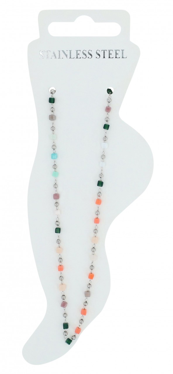 Akzent® Pack de 4 Pulseiras de Pé “Peggy” Prateadas com Pedras Multicoloridas em Aço Inoxidável 0093