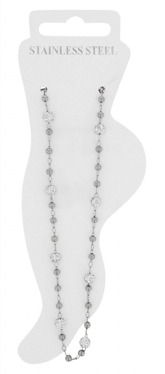 Akzent® Pack de 4 Pulseiras de Pé “Peggy” Prateadas com Pedras Brilhantes em Aço Inoxidável 0093