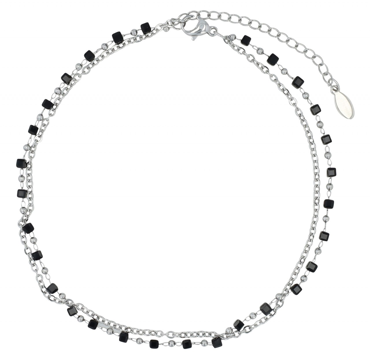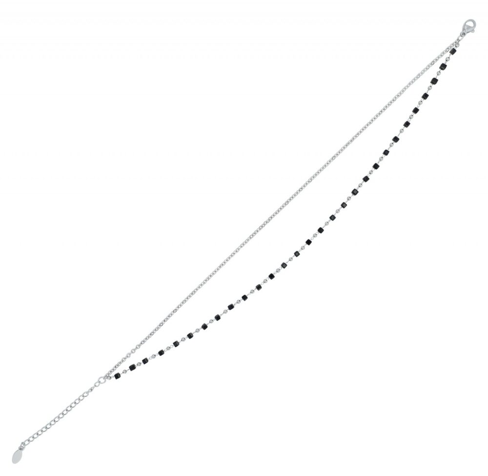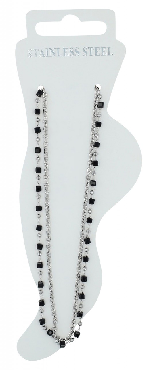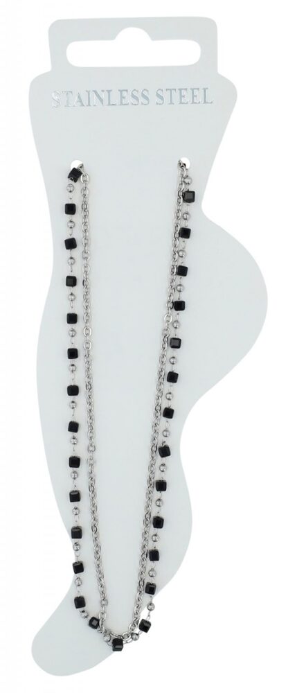 Akzent® Pack de 4 Pulseiras de Pé “Peggy” Prateadas com Pedras Pretas em Aço Inoxidável 0093
