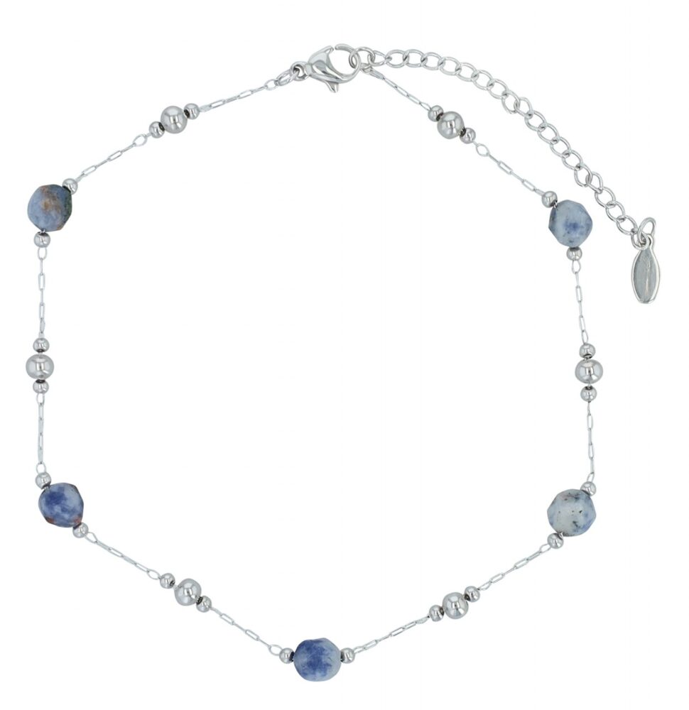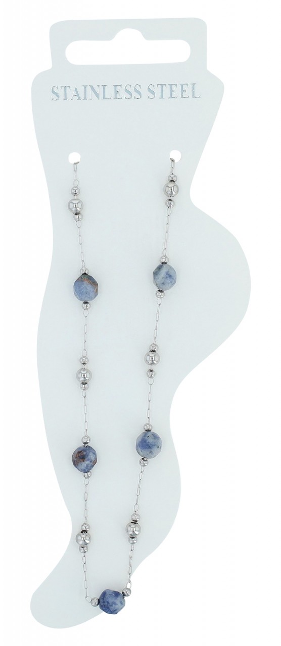 Akzent® Pack de 4 Pulseiras de Pé “Peggy” Prateadas com Pedras Naturais em Aço Inoxidável 0093