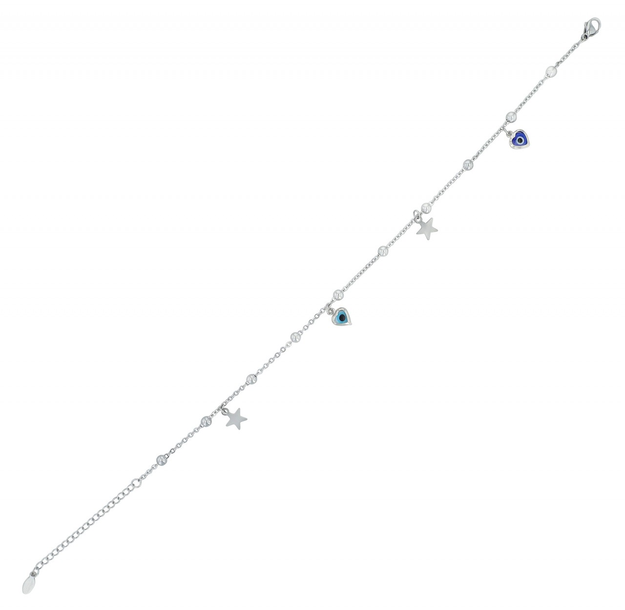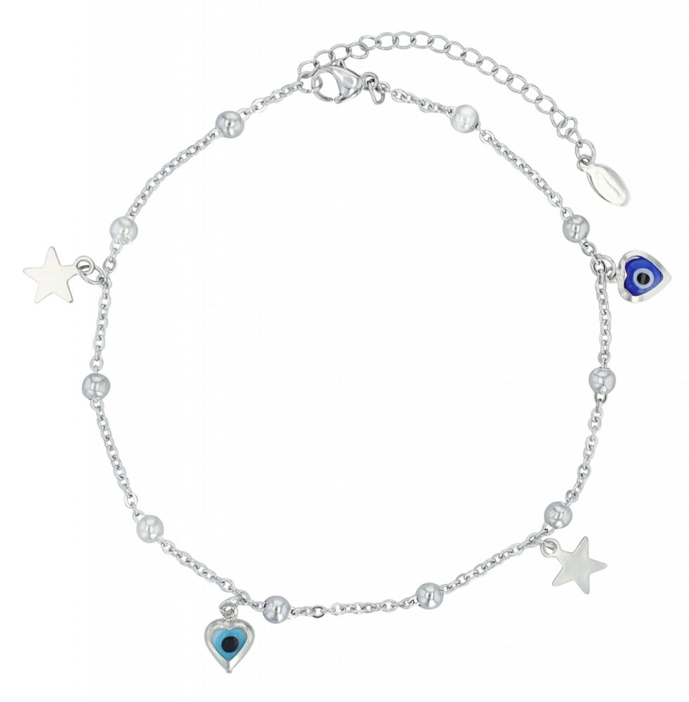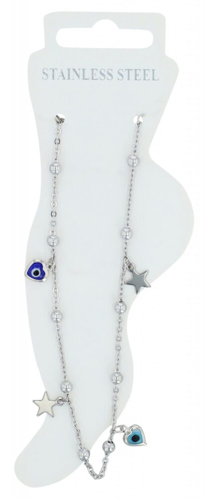 Akzent® Pack de 4 Pulseiras de Pé “Peggy” Prateadas com Pingentes em Aço Inoxidável 0093