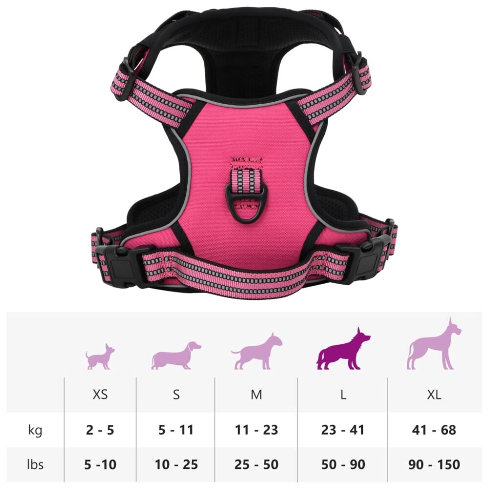 Peitoral para cães com faixas refletoras ajustável L rosa - PORTES GRÁTIS