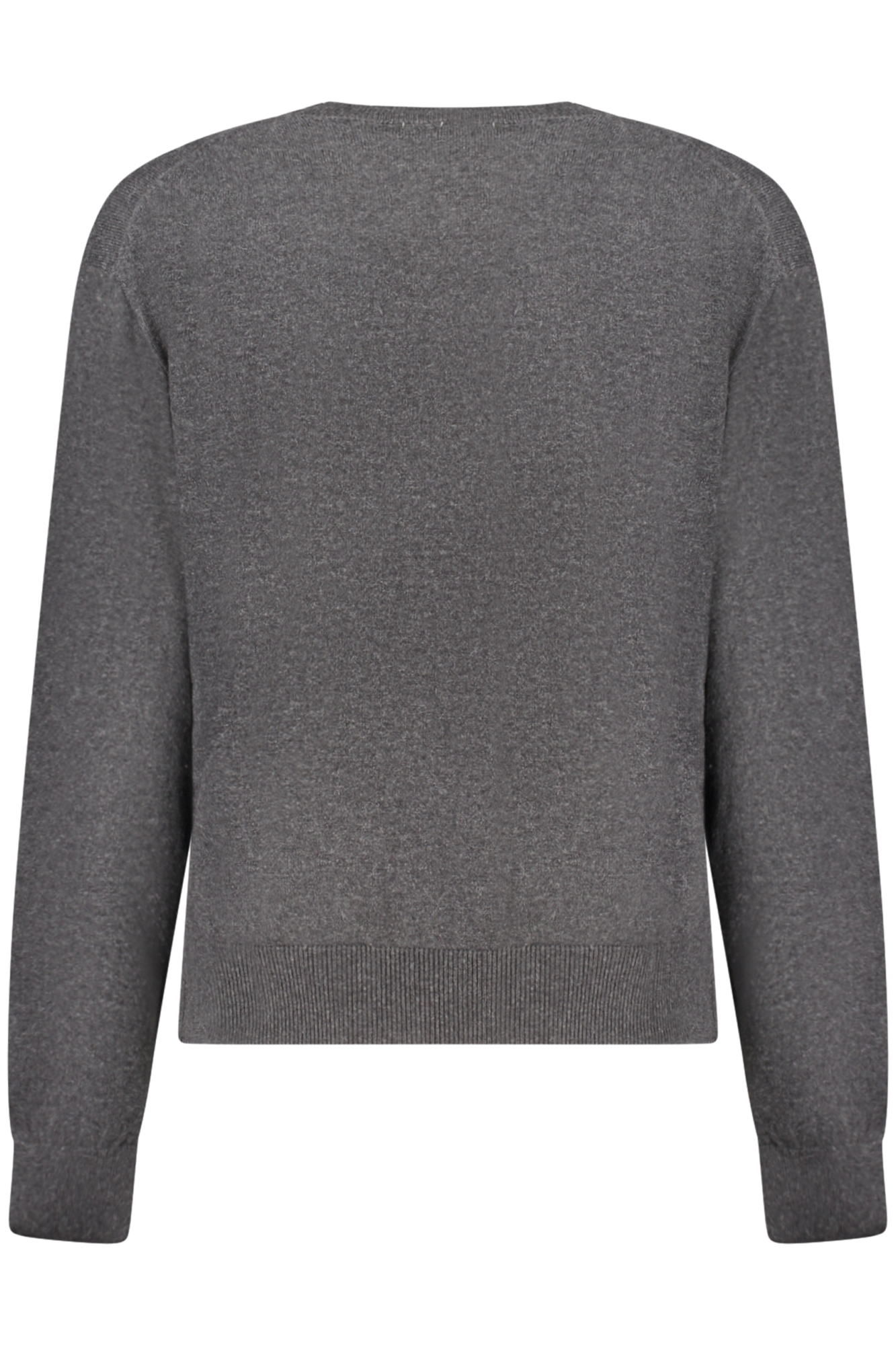 Camisola de manga comprida com gola redonda e fendas laterais, com bordado subtil e logótipo elegante.