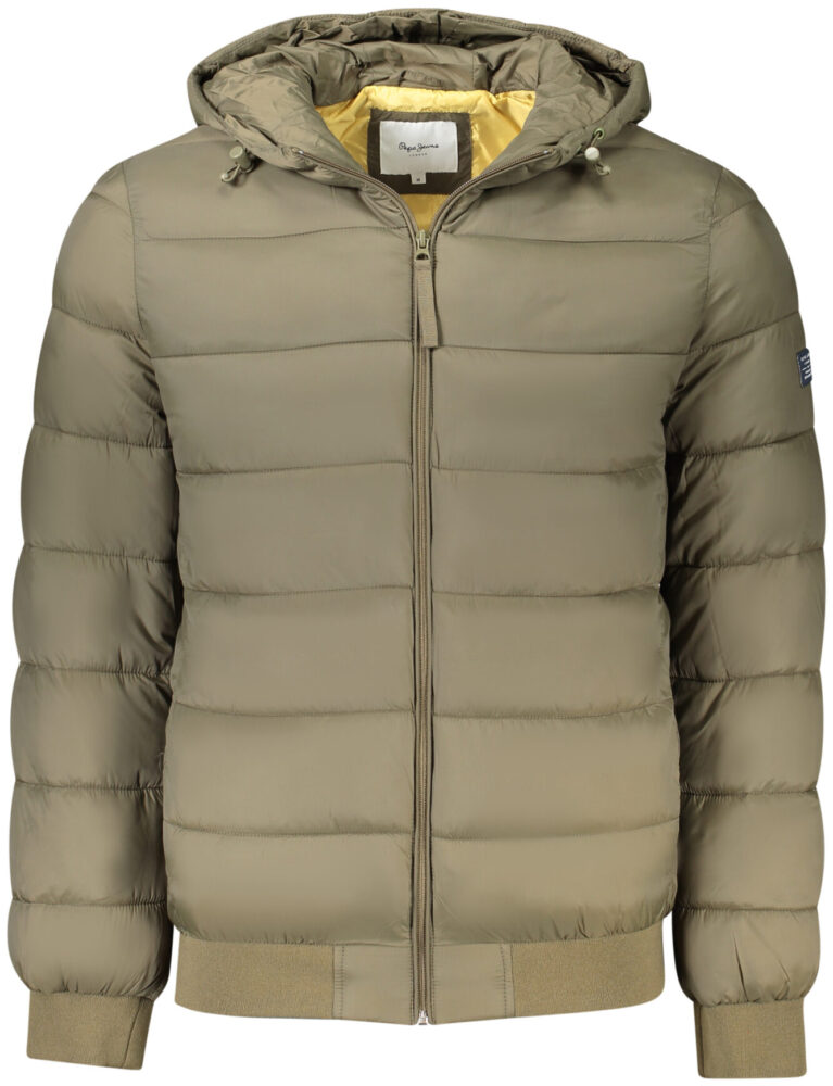 Casaco de manga comprida com capuz, 2 bolsos externos, 1 bolso interno, zíper, aplicação, logo.