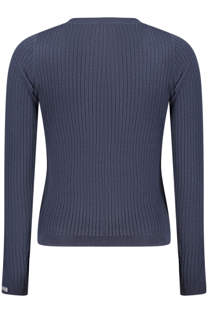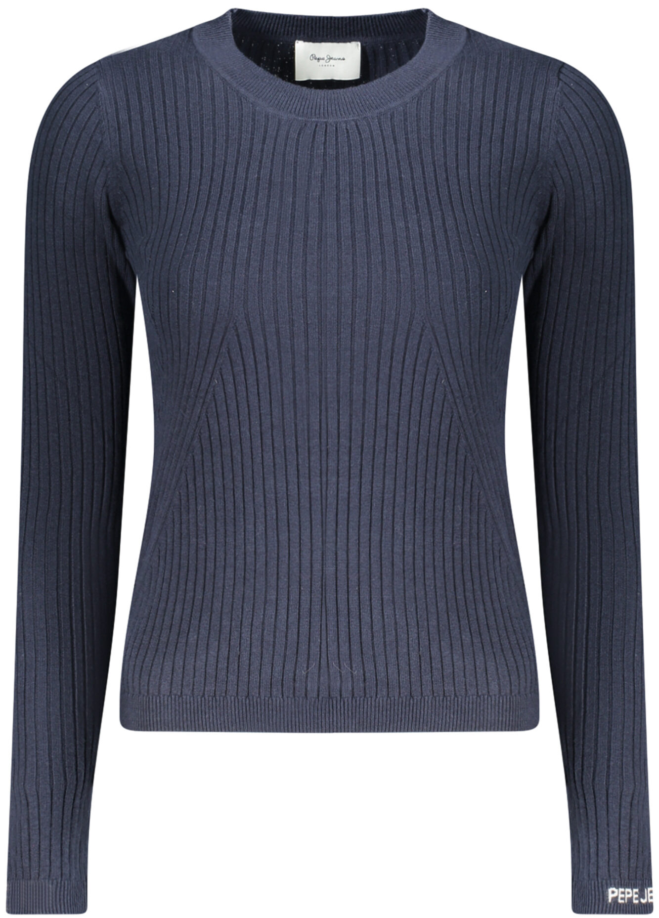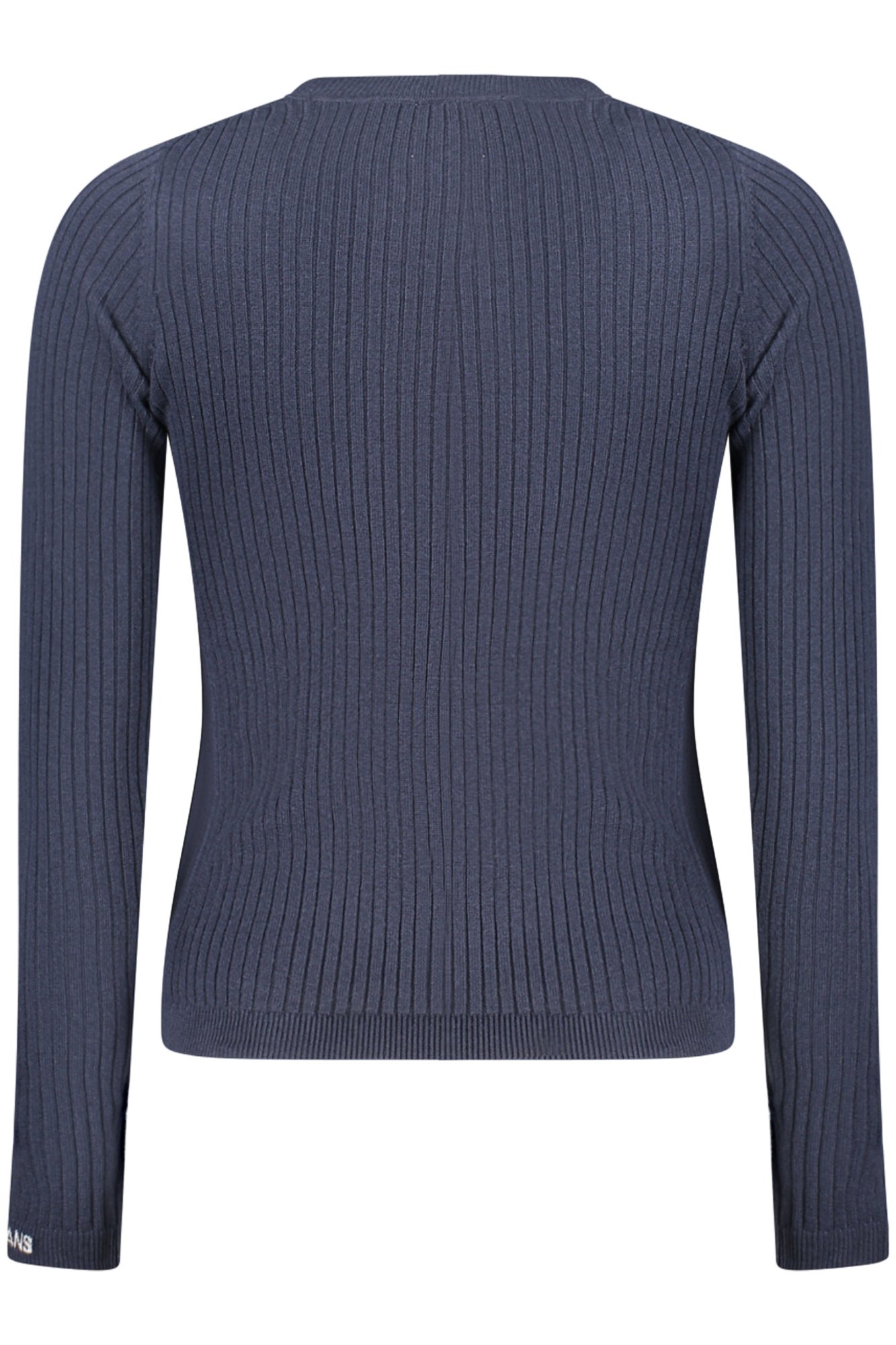Suéter de manga comprida com gola redonda, malha leve em rede, detalhes em contraste e bordado com logótipo