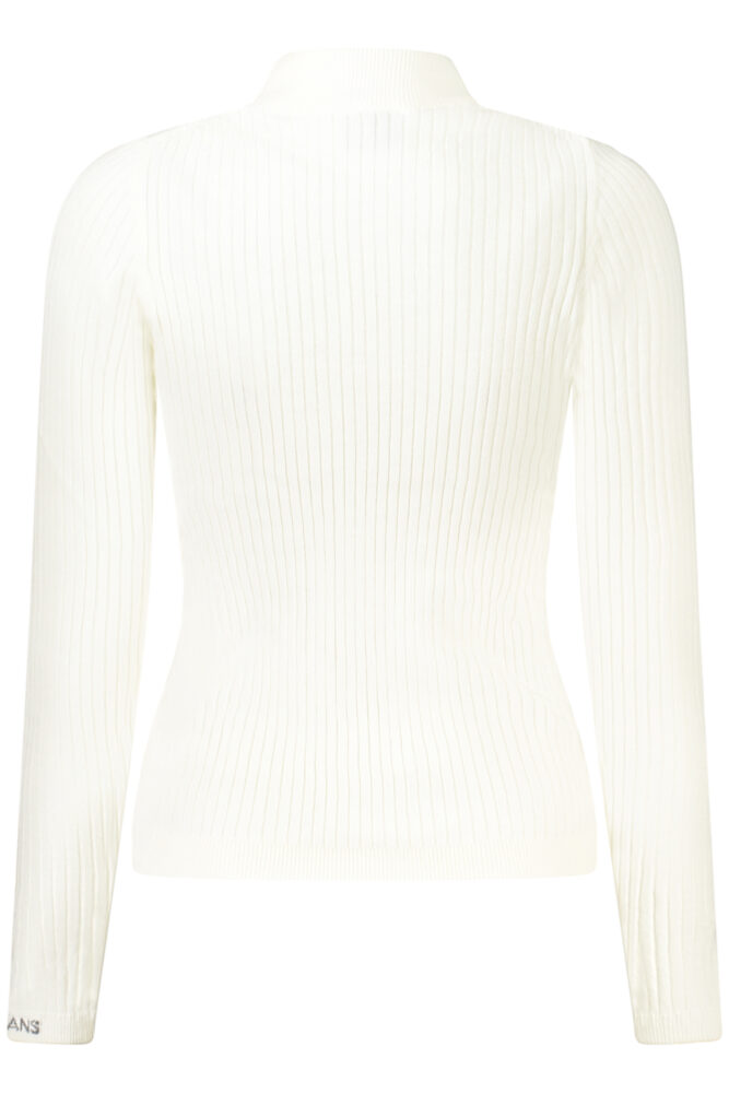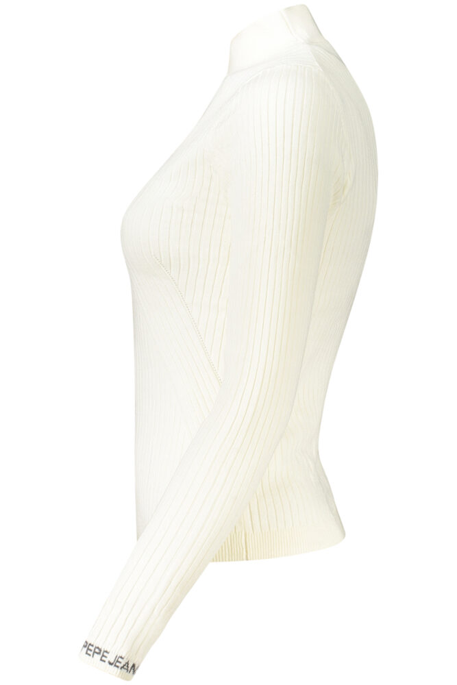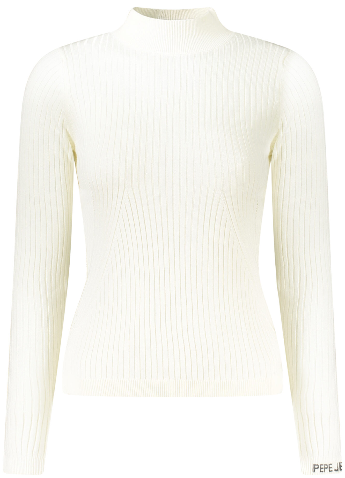 Camisola de manga comprida com gola alta, malha canelada e pormenores em contraste.
