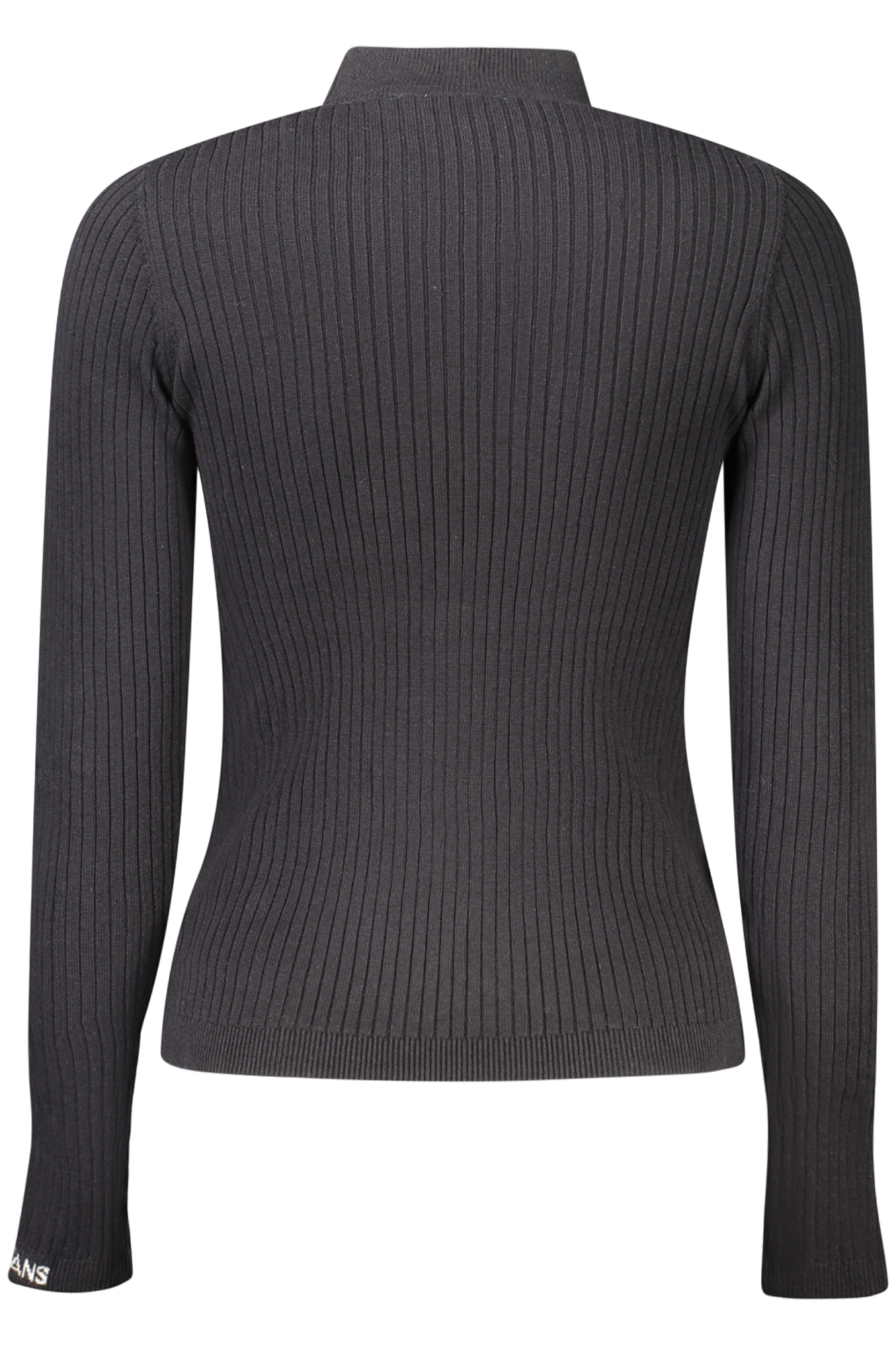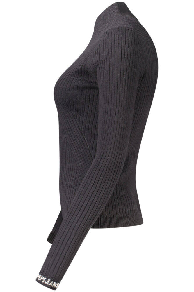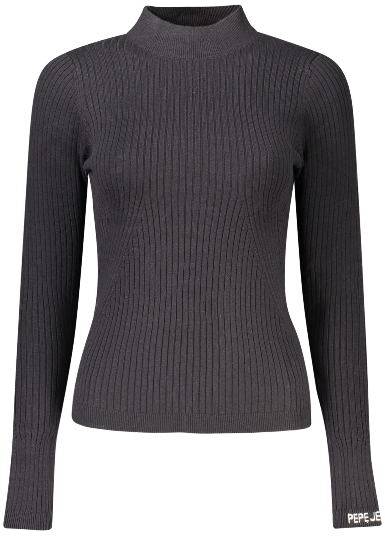 Camisola de manga comprida com gola alta, malha canelada e pormenores em contraste.