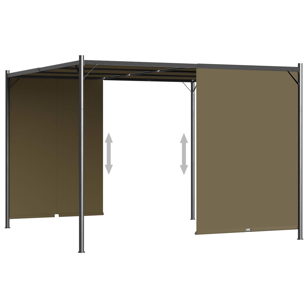 Esta pérgola inovadora está equipada com um toldo deslizante, ajustável e retrátil, que pode ser aberto ou fechado para ambos os lados com as manivelas incorporadas. Assim, depende de si decidir quanto sol ou sombra deseja ter. Feita de aço revestido a pó, esta pérgola é muito robusta e durável. O teto é feito de tecido de poliéster revestido a PA e é resistente à água e às intempéries. Também pode ser retirado para lavar ou armazenar quando não estiver a utilizá-lo. A entrega também inclui as estacas de enterrar.