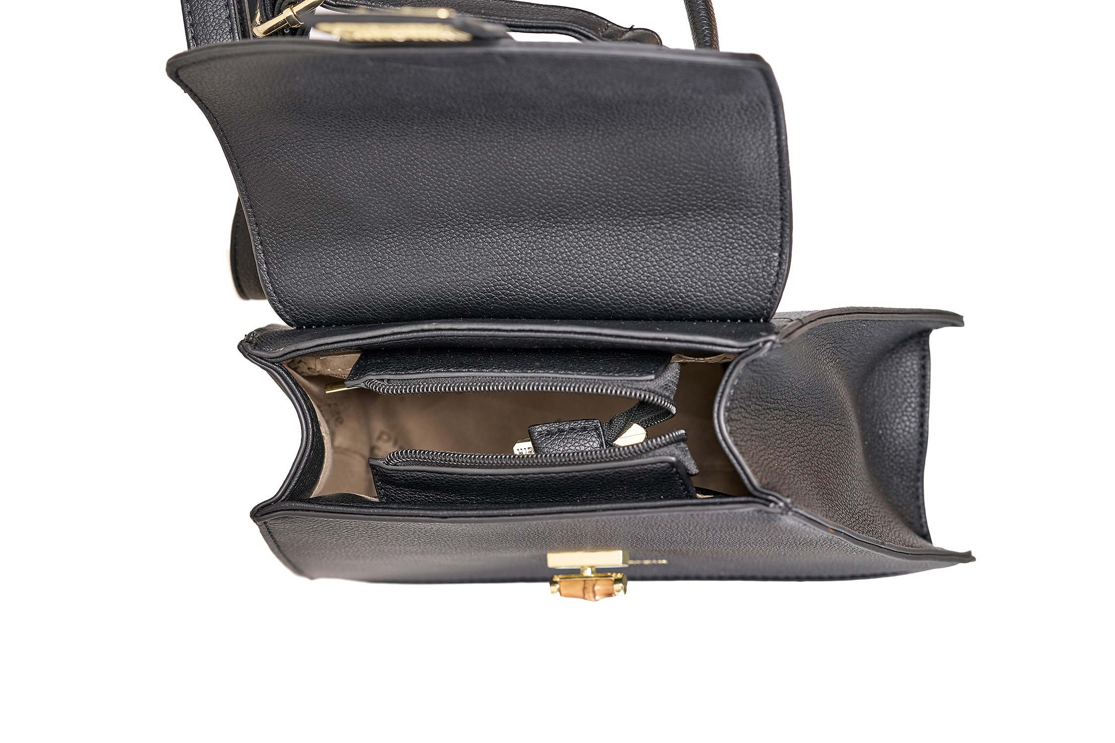 Esta bolsa de couro sintético Pierre Cardin apresenta um design exclusivo e uma elegância extraordinária. O fecho giratório e o logotipo impresso acrescentam detalhes sofisticados. Apresentando uma alça de mão e uma alça transversal ajustável, esta bolsa oferece máxima versatilidade. No interior, você encontrará amplo espaço e um prático bolso de armazenamento para manter tudo organizado com estilo.