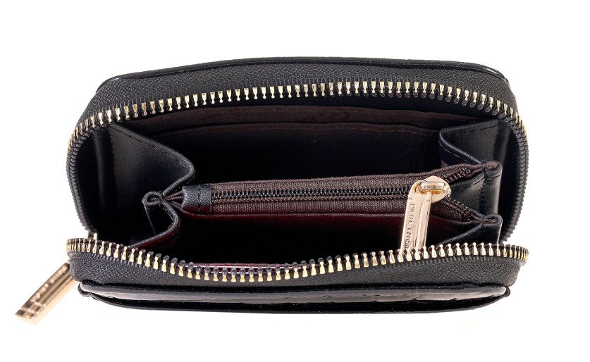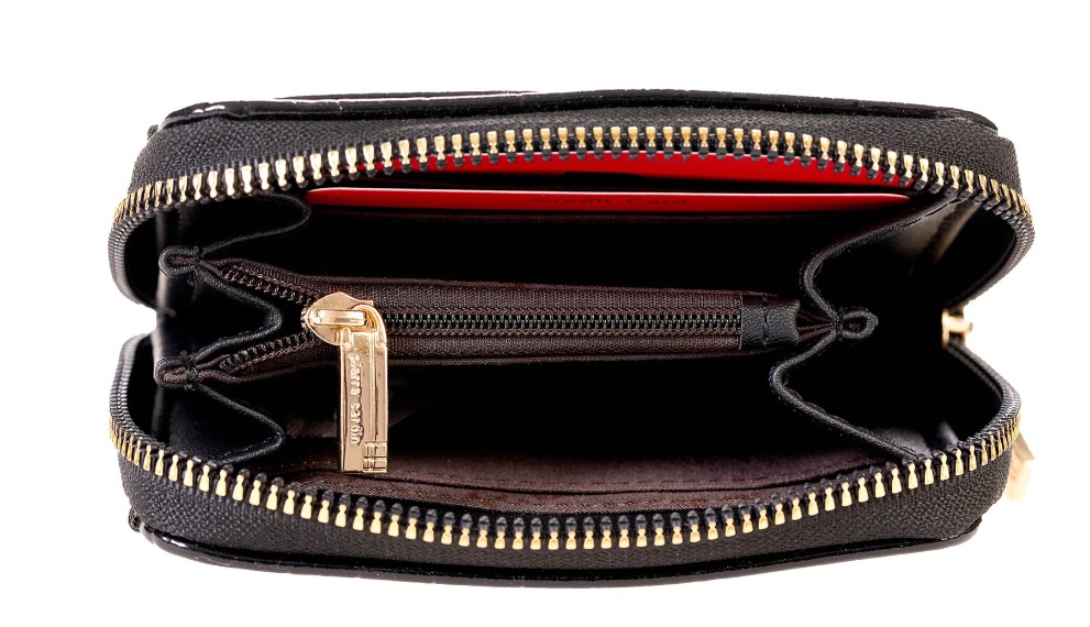 Carteira com zíper e compartimentos internos para cartões, moedas e notas em couro ecológico