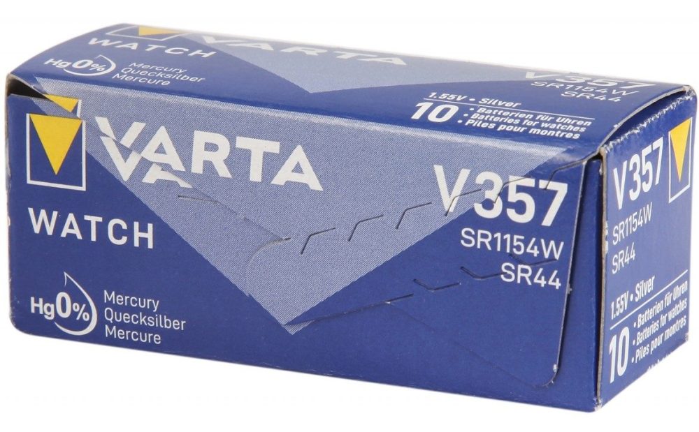 Pilha VARTA V357 Caixa 10 unidades Óxido de Prata Tensão 1,55 V - Made in Germany