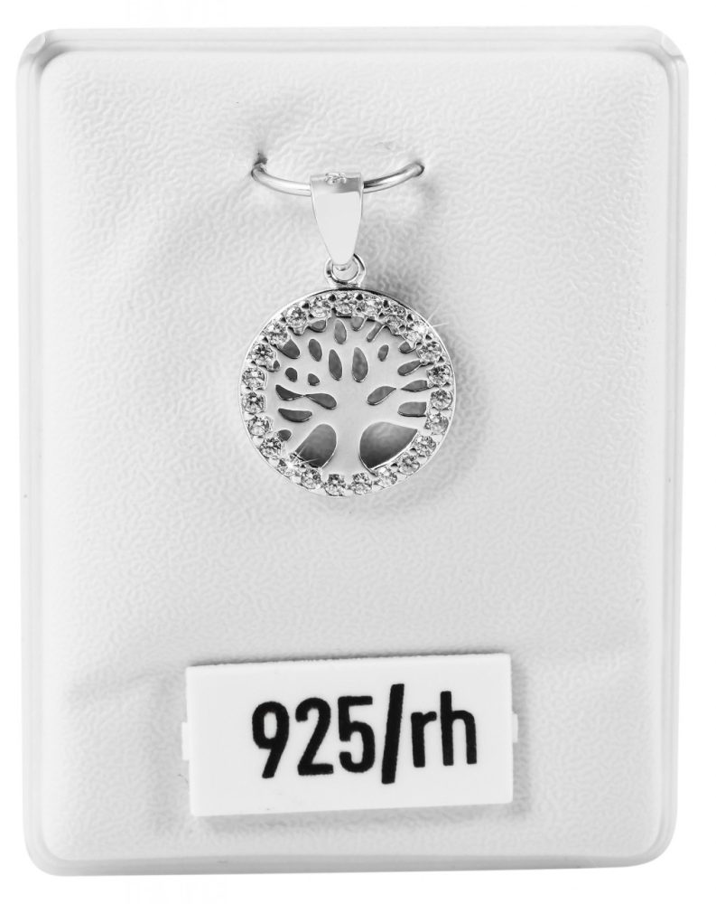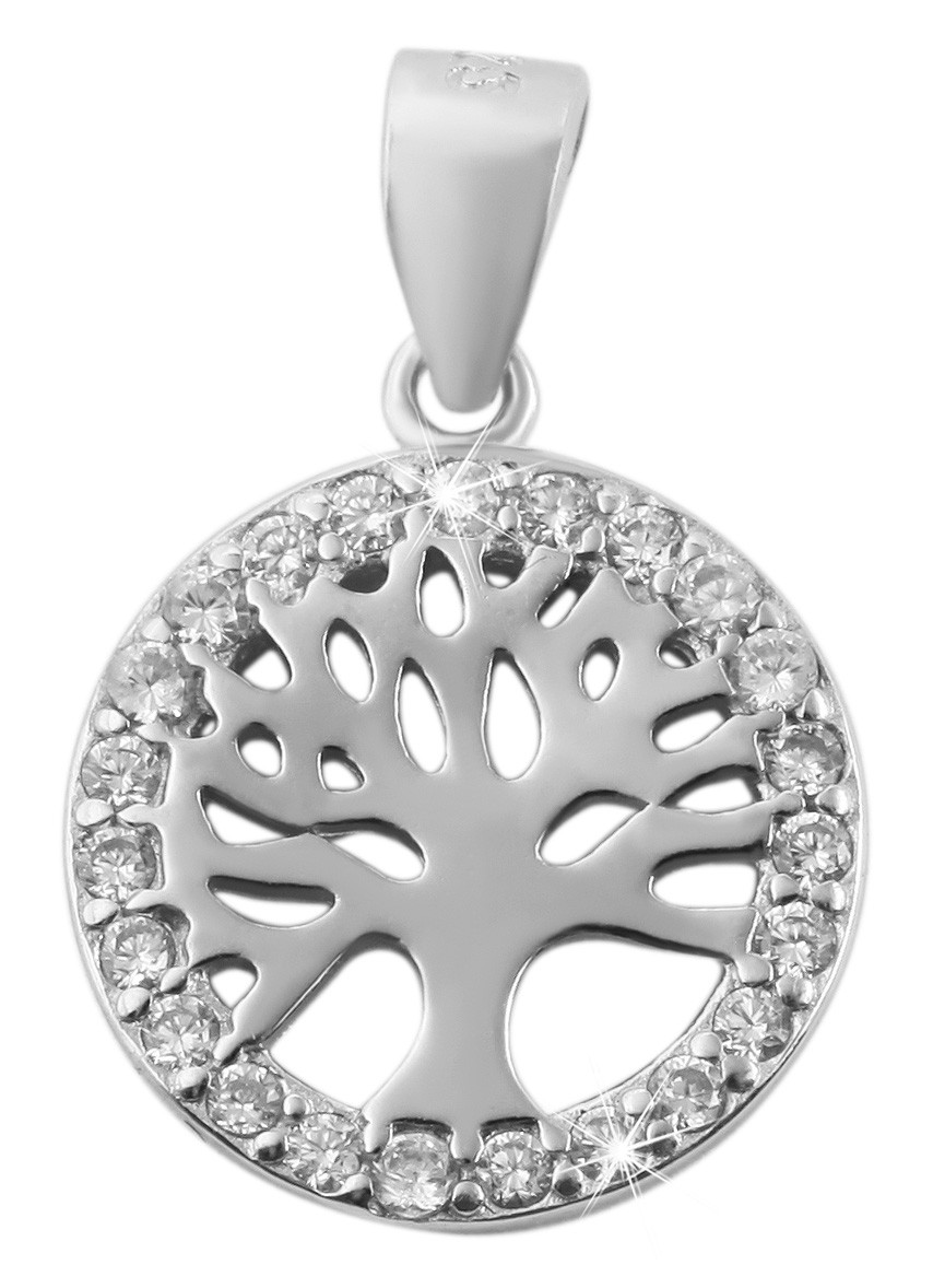O pingente redondo com a árvore da vida foi feito em prata esterlina 925. O pingente de prata tem pequenos recortes para que se possa ver o motivo de uma árvore da vida. São 23 pedras de zircônia em cores diferentes dispostas ao redor. Esses detalhes amorosos fazem do pingente um acessório especial. O pingente é entregue sem corrente. As dimensões resultam de um diâmetro de 11 mm e uma espessura de 1 mm.