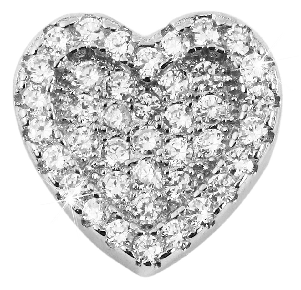 O pingente em forma de coração feito de prata esterlina 925 é banhado a ródio. O revestimento de ródio de alta qualidade evita a oxidação da joia e confere-lhe um brilho duradouro. O coração é totalmente cravejado com pequenas pedras brilhantes de zircônia. A borda externa, que se destaca ligeiramente, é decorada com 22 pedras e o interior do coração contém 18 pedras de zircônia. Para fixar o pingente como acessório em correntes ou pulseiras, existem duas aberturas laterais para que a corrente possa ser facilmente puxada. Observe que uma corrente não está incluída. O tamanho do pingente é composto por comprimento e largura de 10 mm e espessura de 5 mm.