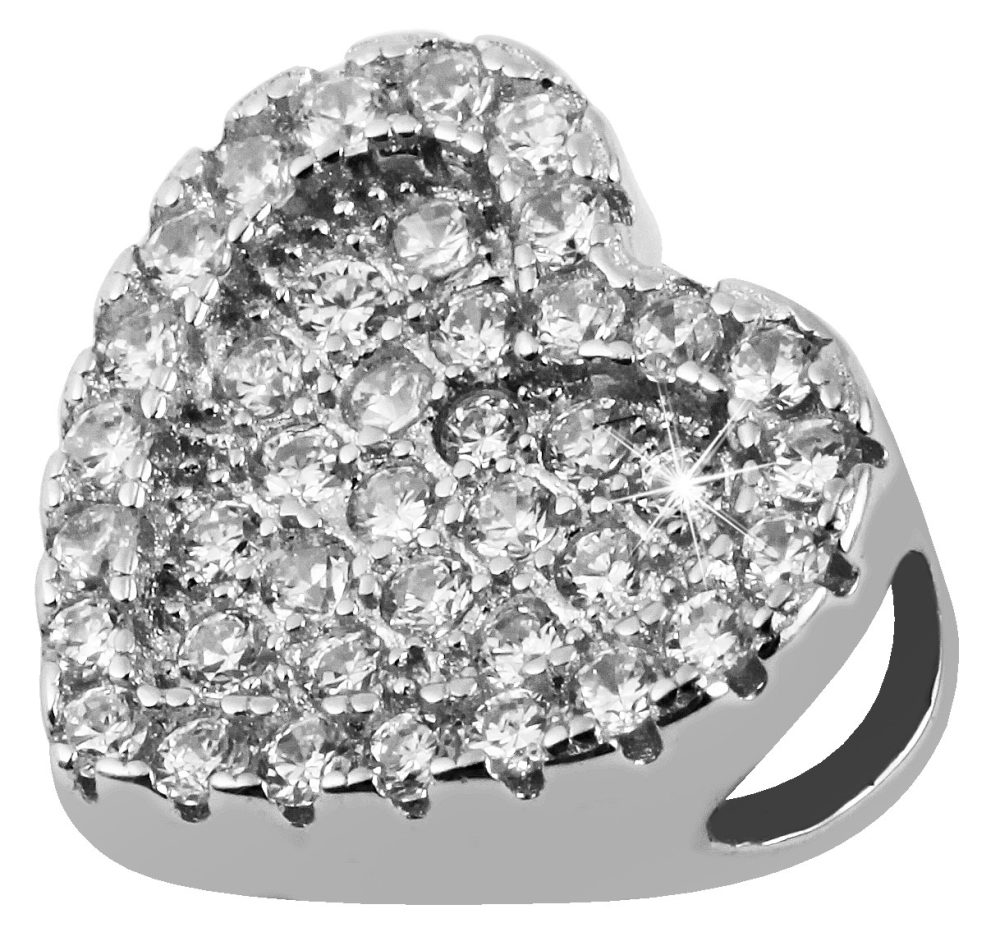 O pingente em forma de coração feito de prata esterlina 925 é banhado a ródio. O revestimento de ródio de alta qualidade evita a oxidação da joia e confere-lhe um brilho duradouro. O coração é totalmente cravejado com pequenas pedras brilhantes de zircônia. A borda externa, que se destaca ligeiramente, é decorada com 22 pedras e o interior do coração contém 18 pedras de zircônia. Para fixar o pingente como acessório em correntes ou pulseiras, existem duas aberturas laterais para que a corrente possa ser facilmente puxada. Observe que uma corrente não está incluída. O tamanho do pingente é composto por comprimento e largura de 10 mm e espessura de 5 mm.