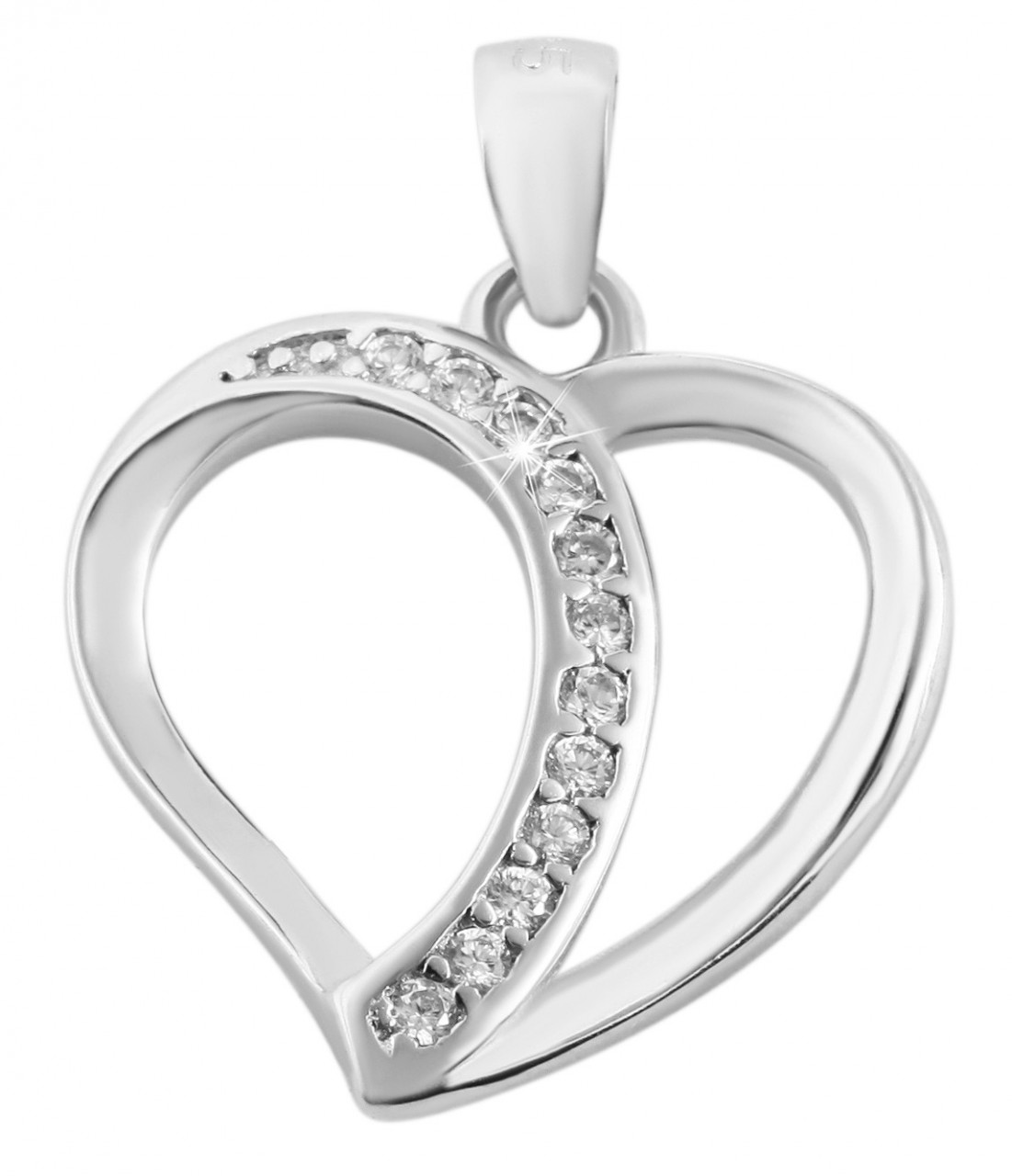O pingente em forma de coração é feito de prata esterlina 925 e adicionalmente banhado a ródio. O revestimento de ródio de alta qualidade protege a joia de manchas e garante um brilho particularmente duradouro do material. O pingente de coração é aberto e separado em duas metades de coração no meio com 12 pedras brilhantes de zircônia. A combinação da prata brilhante com as radiantes pedras de zircônia conferem ao pingente de prata um toque romântico e jovem. Isso significa que o pingente se adapta a cada usuário e é adequado para jovens e idosos. O tamanho do pingente tem comprimento e largura de 16 mm e espessura de 2 mm. Observe que um colar não está incluído.