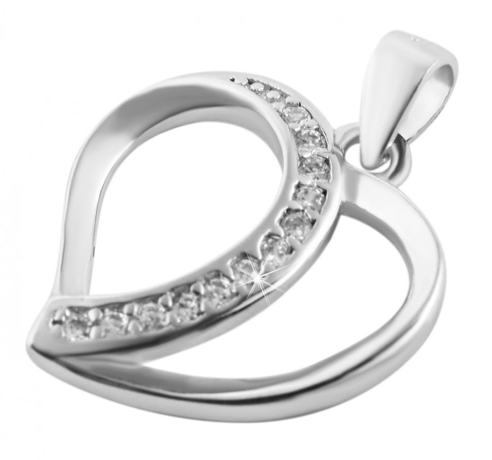 O pingente em forma de coração é feito de prata esterlina 925 e adicionalmente banhado a ródio. O revestimento de ródio de alta qualidade protege a joia de manchas e garante um brilho particularmente duradouro do material. O pingente de coração é aberto e separado em duas metades de coração no meio com 12 pedras brilhantes de zircônia. A combinação da prata brilhante com as radiantes pedras de zircônia conferem ao pingente de prata um toque romântico e jovem. Isso significa que o pingente se adapta a cada usuário e é adequado para jovens e idosos. O tamanho do pingente tem comprimento e largura de 16 mm e espessura de 2 mm. Observe que um colar não está incluído.