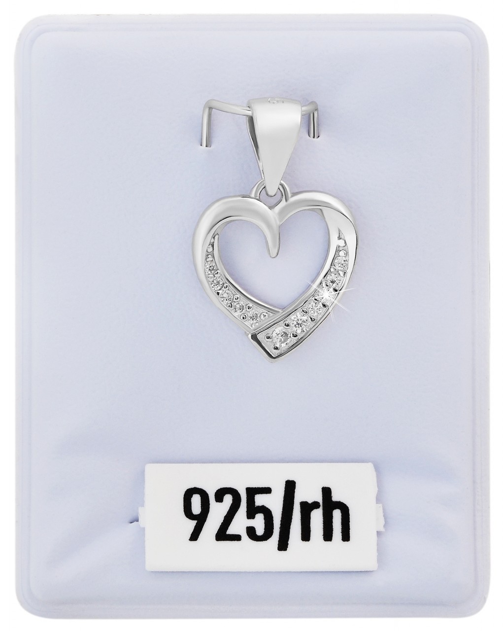 O pingente em formato de coração é feito de prata esterlina 925 e também possui uma camada de ródio. O revestimento garante longa durabilidade, brilho radiante e protege a joia de manchas. O pingente de coração com bordas elegantes é decorado com 11 pedras de zircônia em forma de pinos. O pingente pode ser preso a correntes usando um ilhó oval. Ao adquirir este produto, observe que o pingente é entregue sem corrente. O tamanho do pingente tem 13 mm de comprimento, 12 mm de largura e 2 mm de espessura.