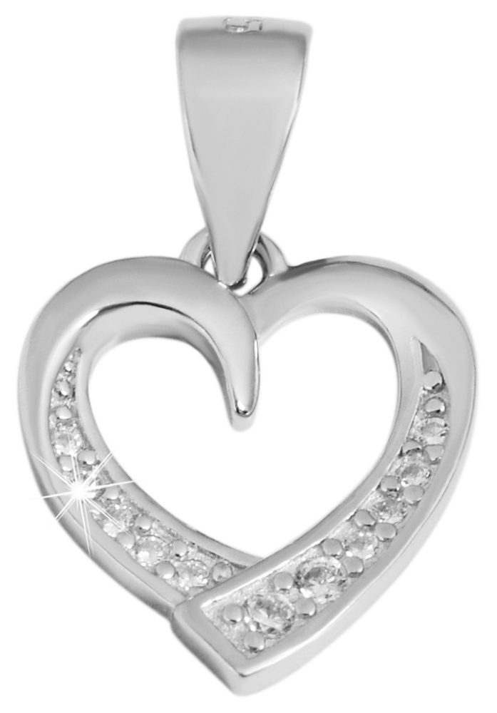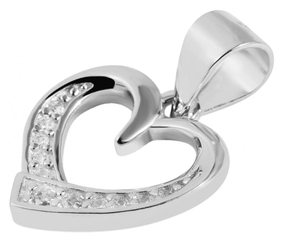 O pingente em formato de coração é feito de prata esterlina 925 e também possui uma camada de ródio. O revestimento garante longa durabilidade, brilho radiante e protege a joia de manchas. O pingente de coração com bordas elegantes é decorado com 11 pedras de zircônia em forma de pinos. O pingente pode ser preso a correntes usando um ilhó oval. Ao adquirir este produto, observe que o pingente é entregue sem corrente. O tamanho do pingente tem 13 mm de comprimento, 12 mm de largura e 2 mm de espessura.