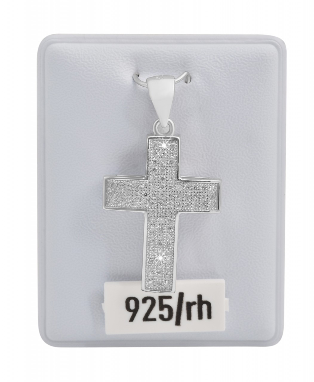 O pingente de cruz é feito em prata de lei 925 e adicionalmente banhado a ródio, protegendo-o da oxidação e proporcionando brilho duradouro. O pingente de corrente é um destaque visual, os detalhes elaborados tornam-no um verdadeiro atrativo. A cruz é cravejada com 84 pedras de zircônia na frente e tem pequenos recortes nas costas e nas laterais para que você possa ver o interior do pingente. Graças ao ilhó oval, o pingente pode ser facilmente preso…