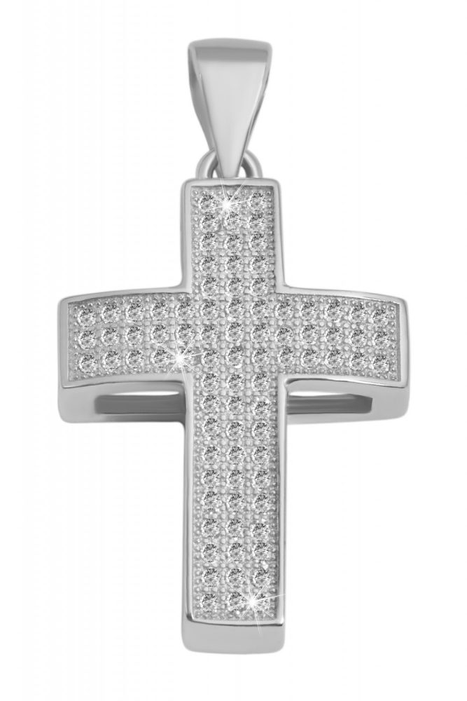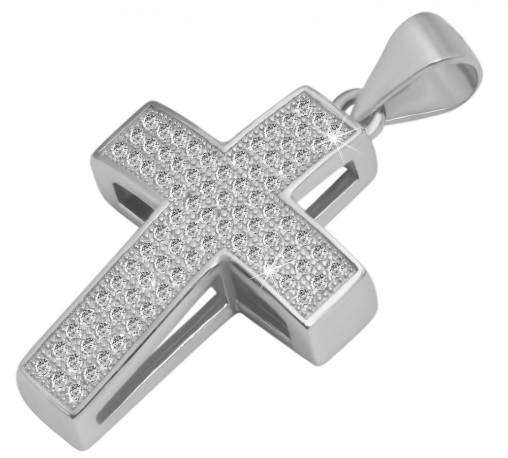 O pingente de cruz é feito em prata de lei 925 e adicionalmente banhado a ródio, protegendo-o da oxidação e proporcionando brilho duradouro. O pingente de corrente é um destaque visual, os detalhes elaborados tornam-no um verdadeiro atrativo. A cruz é cravejada com 84 pedras de zircônia na frente e tem pequenos recortes nas costas e nas laterais para que você possa ver o interior do pingente. Graças ao ilhó oval, o pingente pode ser facilmente preso…