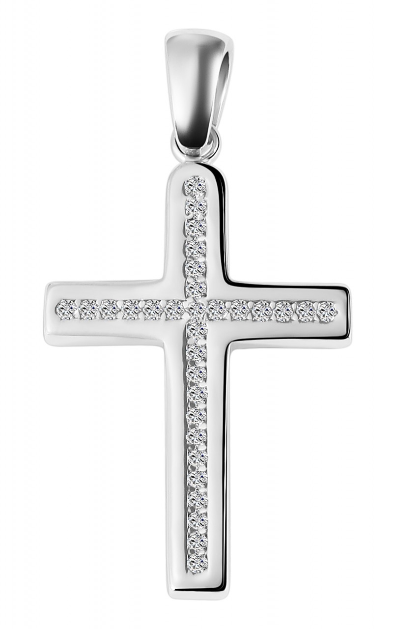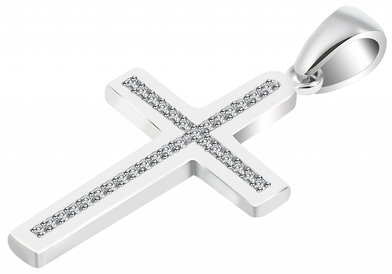 Pingente Cruz em Prata de Lei 925 Sem Corrente com Zircônias Banhado a Ródio