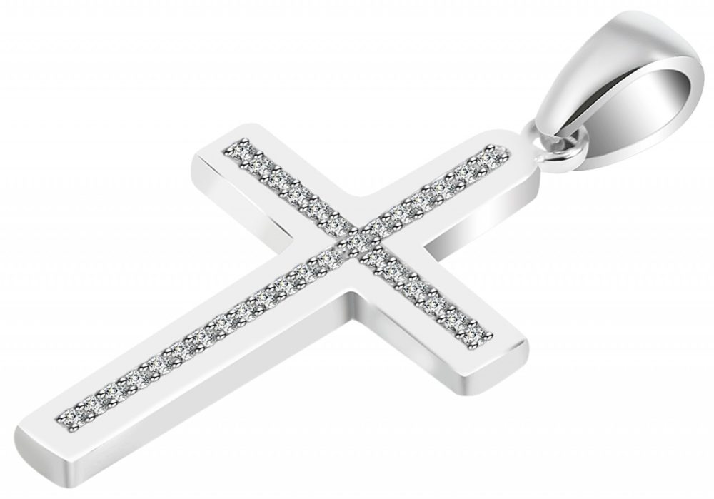 Pingente Cruz em Prata de Lei 925 Sem Corrente com Zircônias Banhado a Ródio