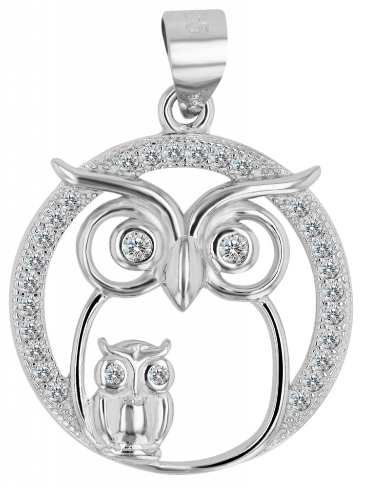 Esta joia com design magistral é feita de prata esterlina 925. O banho de ródio de alta qualidade garante um brilho brilhante e protege o pingente de manchas, garantindo sua beleza e longevidade. O pingente de corrente redonda é incrustado com 26 zircônias na borda. Uma coruja grande e uma pequena adornam o acessório do meio. Cada olho é decorado com uma zircônia. O acabamento capta a luz lindamente e dá ao colar um grande brilho. O pingente é entregue sem corrente. No entanto, pode ser fixado a todos os tipos comuns de correntes através do ilhó.