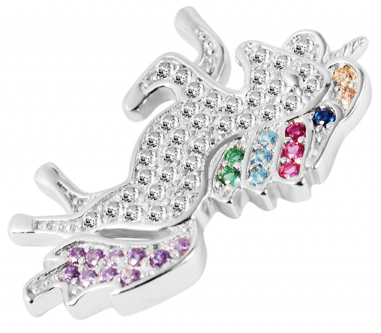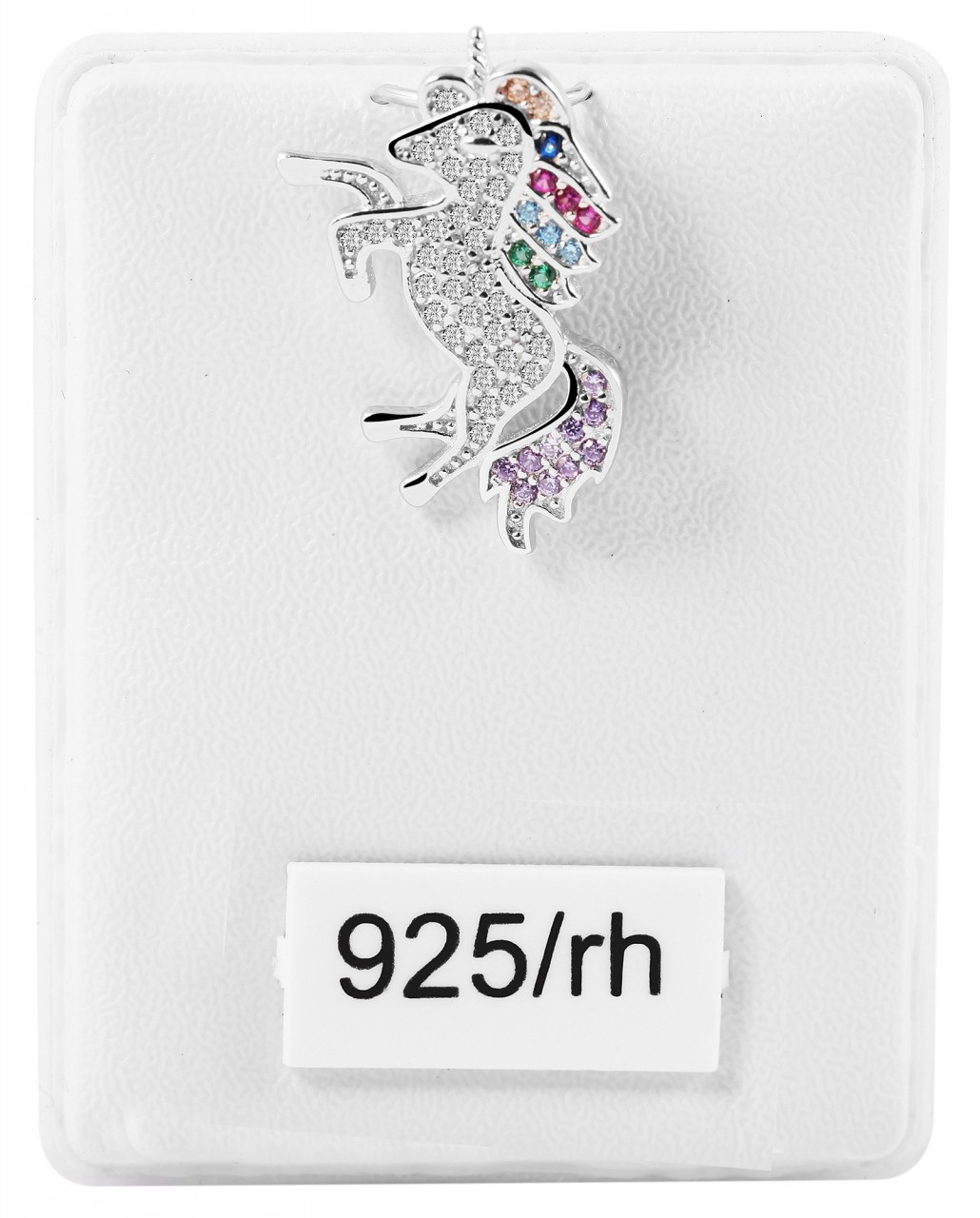 Pingente Unicórnio em Prata de Lei 925 Bhaina sem Corrente com Zircónias Banhado a Ródio