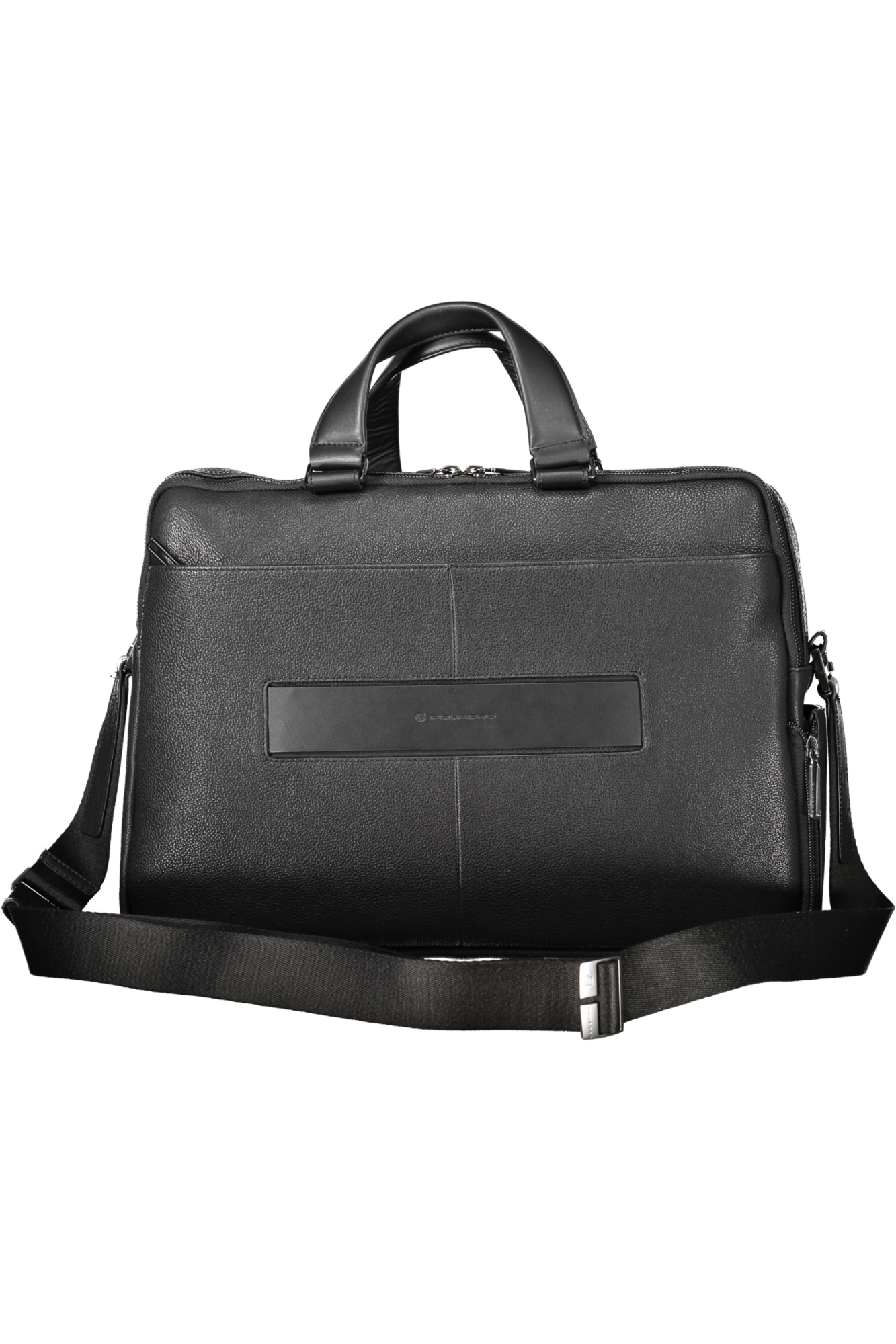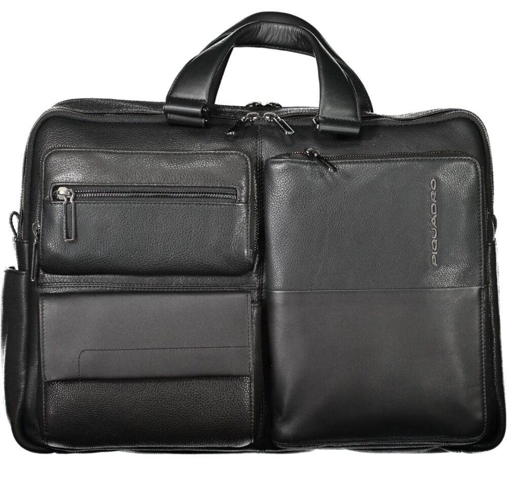 Pasta com 2 alças, alça de ombro ajustável e removível, 5 bolsos externos, 1 bolso externo lateral, 2 compartimentos separados, espaços internos para laptop, porta caneta, porta documentos, 1 bolso interno, detalhes contrastantes, fecho de zíper, logotipo