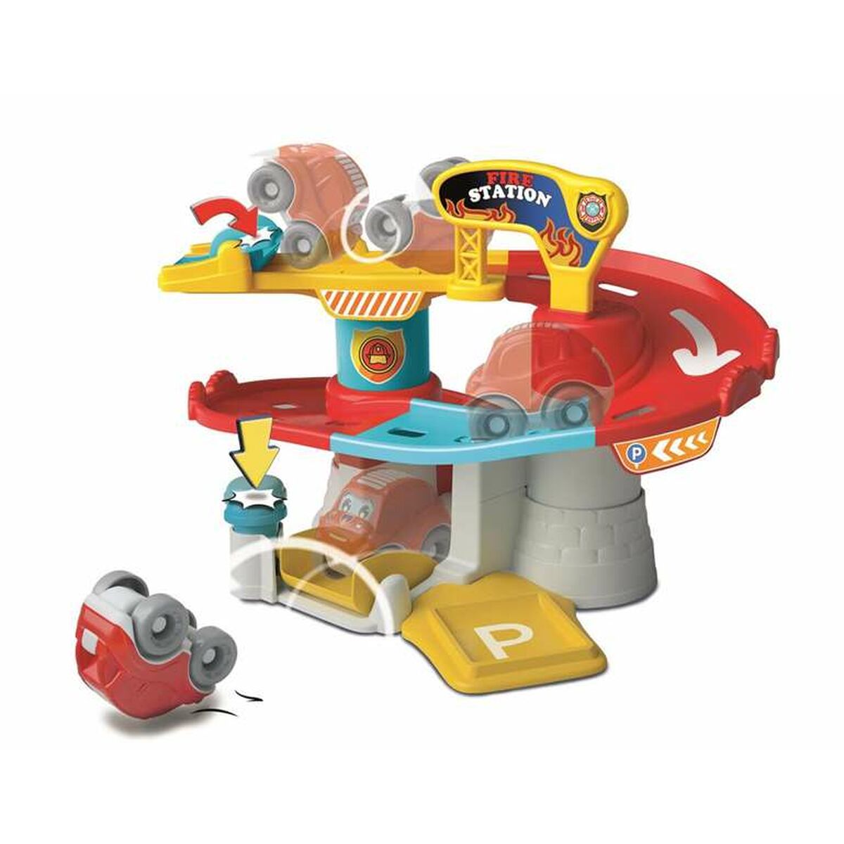 - Descubra todos os carros e produtos da linha Tumbling Cars para entrar num mundo de piruetas! Um quartel de bombeiros com uma pista para lançar os Tumbling Cars e dois terminais de piruetas.