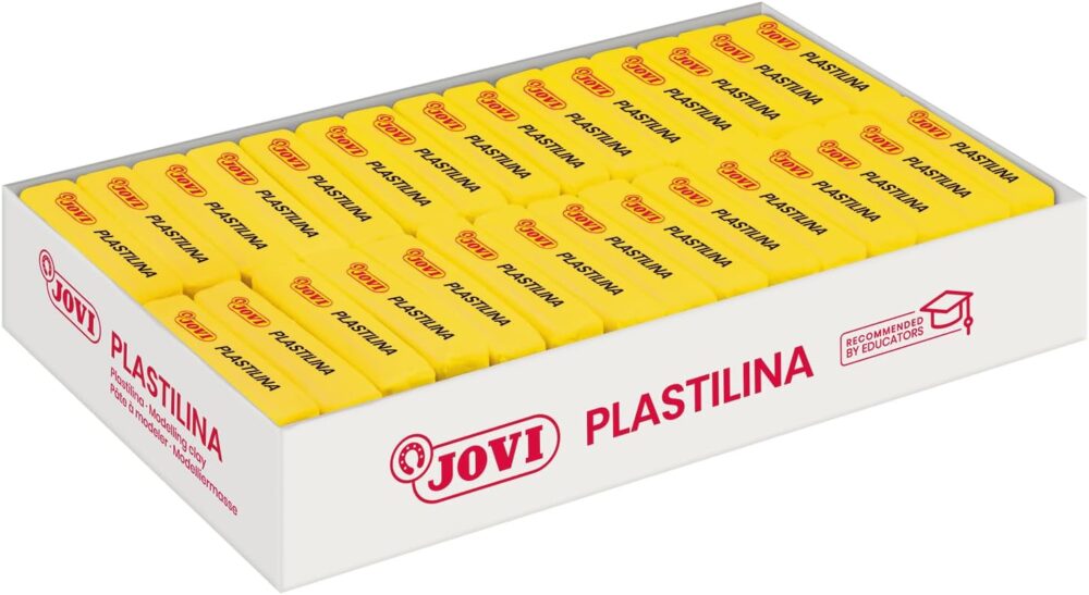 - Kit de pastilhas Jovi – 30 comprimidos de 50 gramas. Amarelo. Modelável com grande plasticidade, perfeito para criar figuras com utensílios em 3D ou planos.