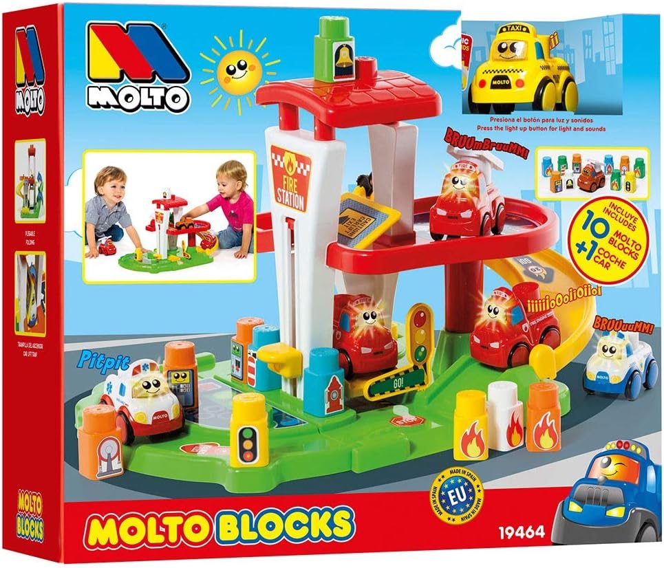 • Também inclui um divertido carro MOLTO BLOCKS, com luzes e som compatível com os blocos MOLTO.