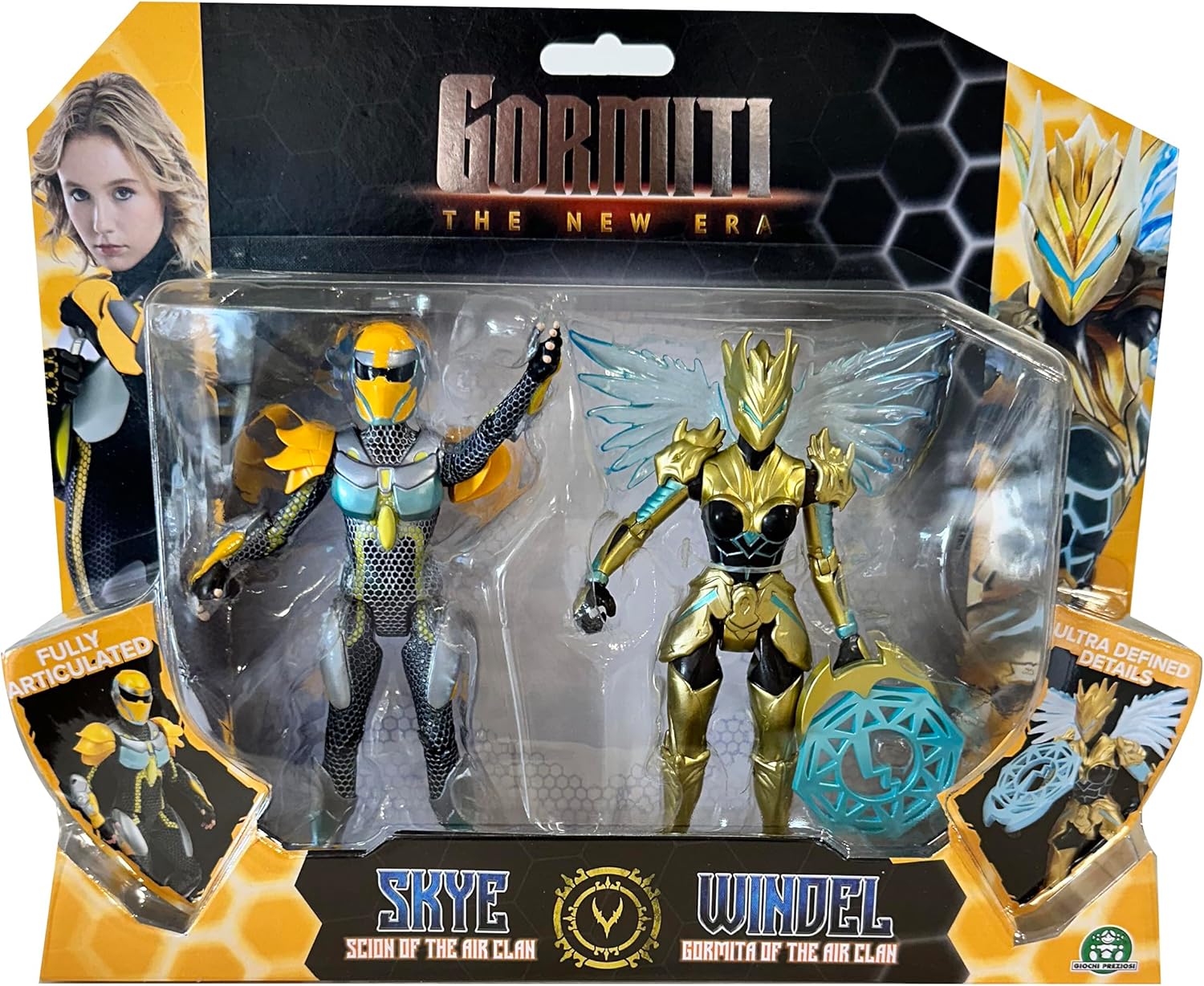 - Figuras SKYE e WINDE: Encontre as suas figuras de 9 pontos de articulação Skye e o Gormiti associado, Windel com a sua arma específica.