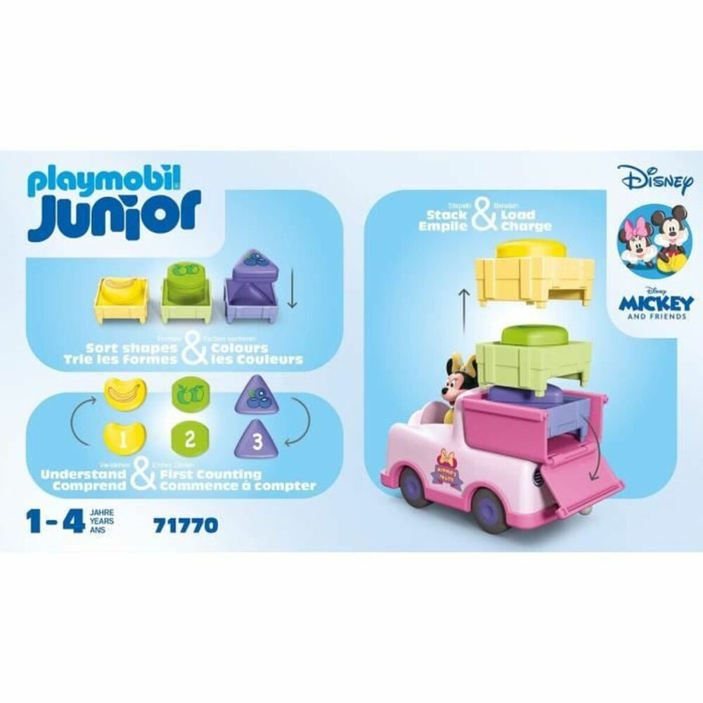- Conteúdo: 1 figura Minnie Mouse, 1 carrinha de entrega, 3 caixas, 3 frutas, empilháveis, classificáveis e ideais para o jogo imaginativo