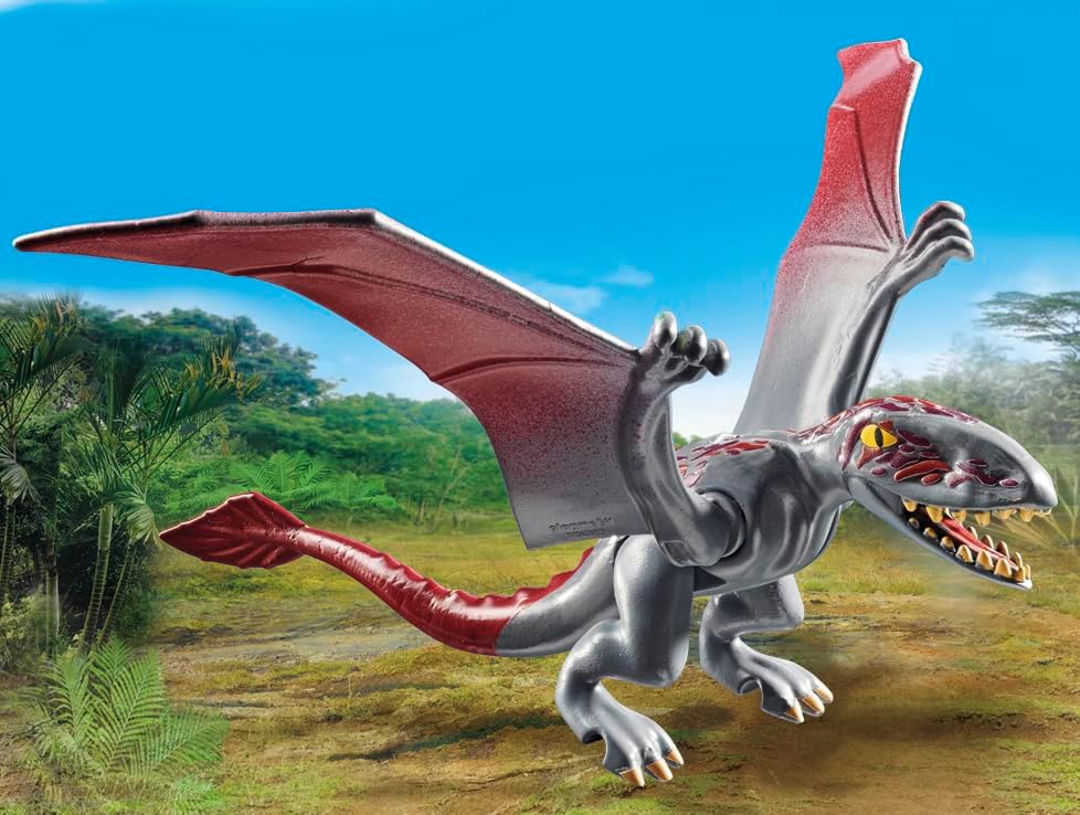 - Observação emocionante: Escondido dentro de um tronco oco, o corajoso pesquisador de dinossauros observa o Dimorphodon enquanto procura comida. Com o seu drone e câmara, pode tirar imagens de muito perto sem incomodar o grande pterossauro