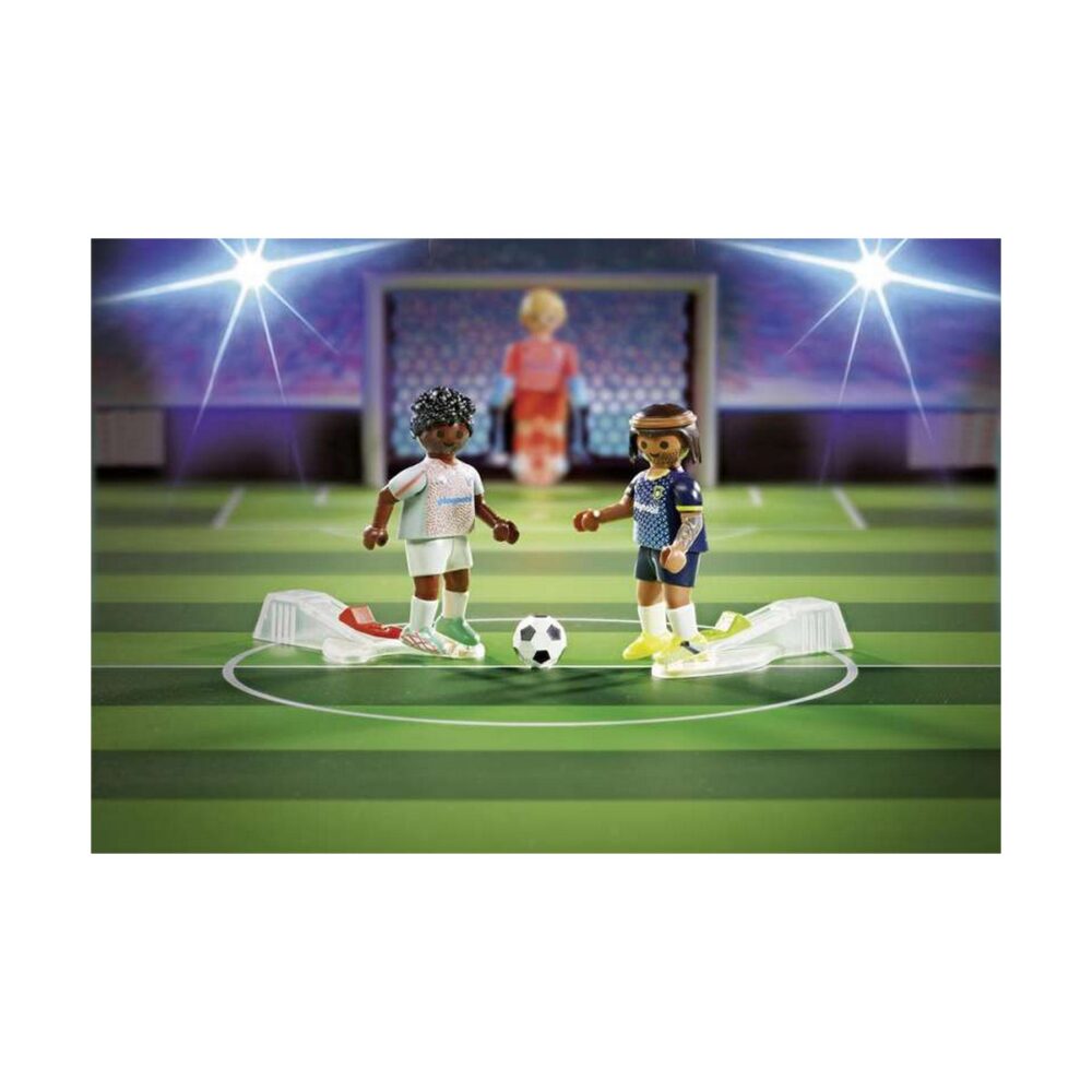 • Conteúdo: 1 x PLAYMOBIL Sports & Action campo de futebol, conjunto de 63 peças com instruções de montagem: 1 campo de futebol PLAYMOBIL, 2 goleiros PLAYMOBIL, 2 jogadores de futebol PLAYMOBIL, 3 basquete, 3 folhas de etiquetas, 52 acessórios, material: plástico. (G)W / 3XG H: aprox, 117 x 66 x 9 cm, peso: 1039 g, 71120