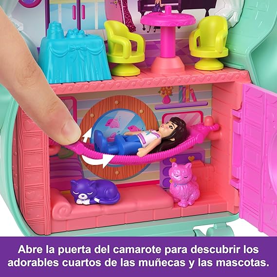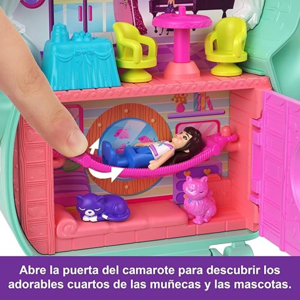 - Viva uma aventura marítima com a Polly Pocket e os seus amigos; este estojo gatinho marinheiro inclui 1 boneca e 10 acessórios, incluindo 2 gatos