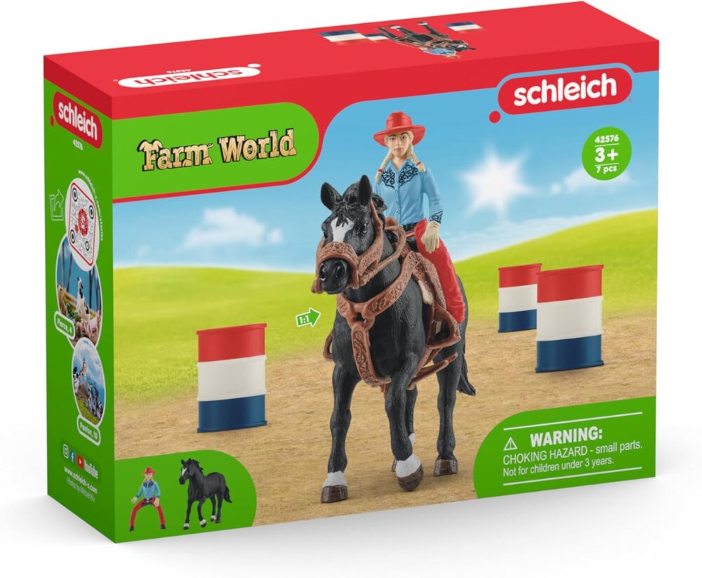 - Na corrida de obstáculos, a Amazona Cowgirl tem de dar a volta a três barris no menor tempo possível!